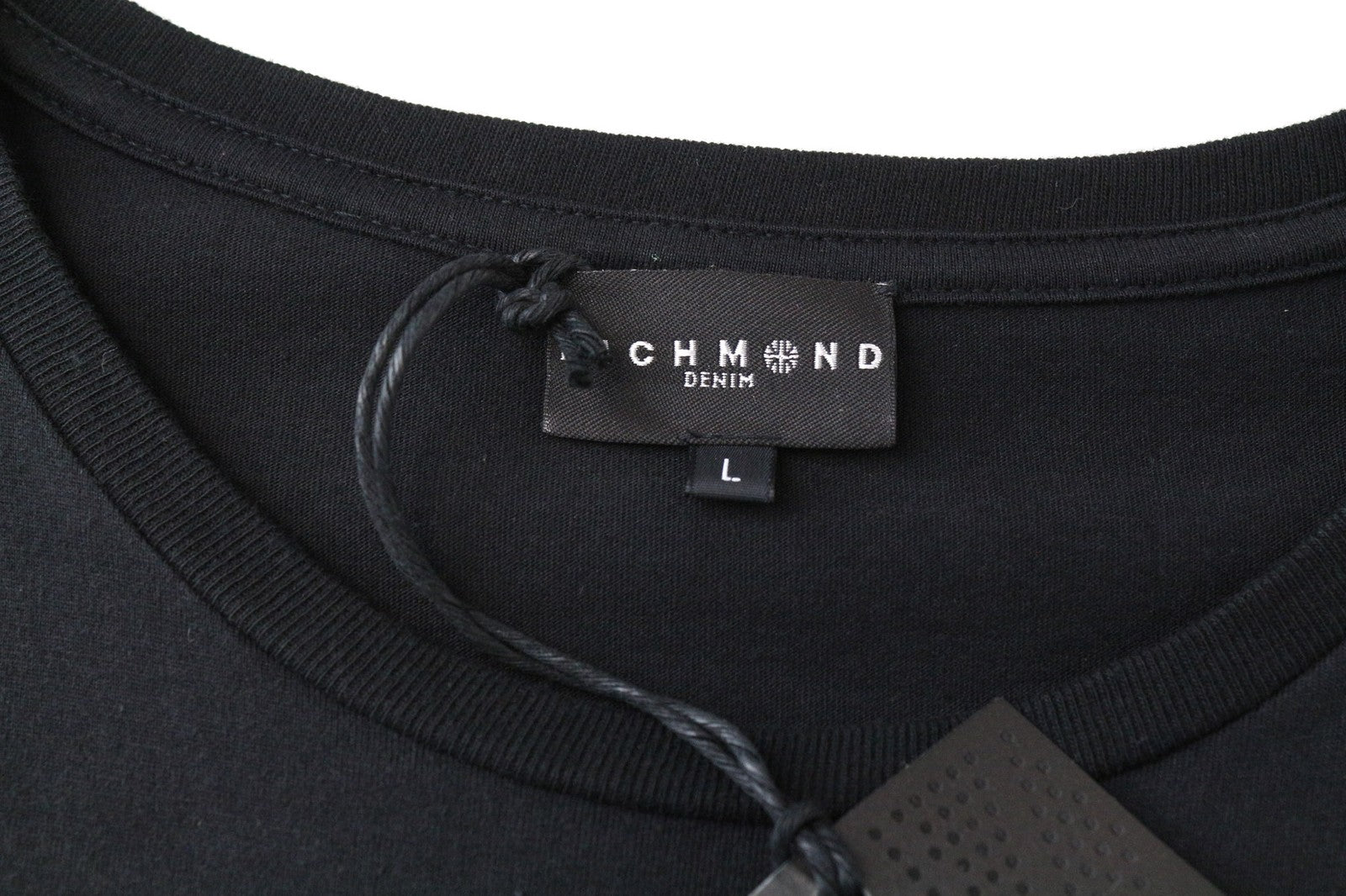 RICHMOND vyriški marškinėliai L dydžio juodi medvilniniai su logotipu ir ilgomis rankovėmis, laisvalaikio stiliaus