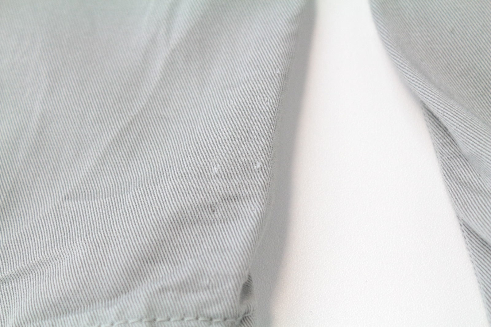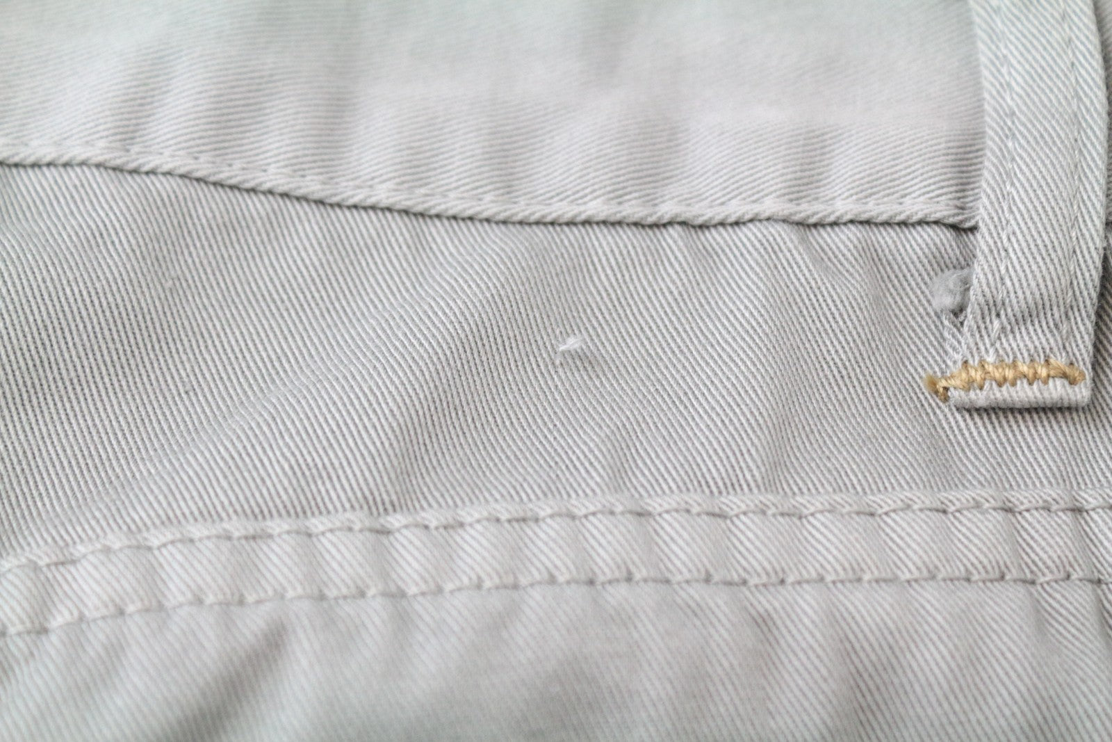 New with defect. Small tears in the hems and upper part. Scratched metal logo on the back. Please see added photos.