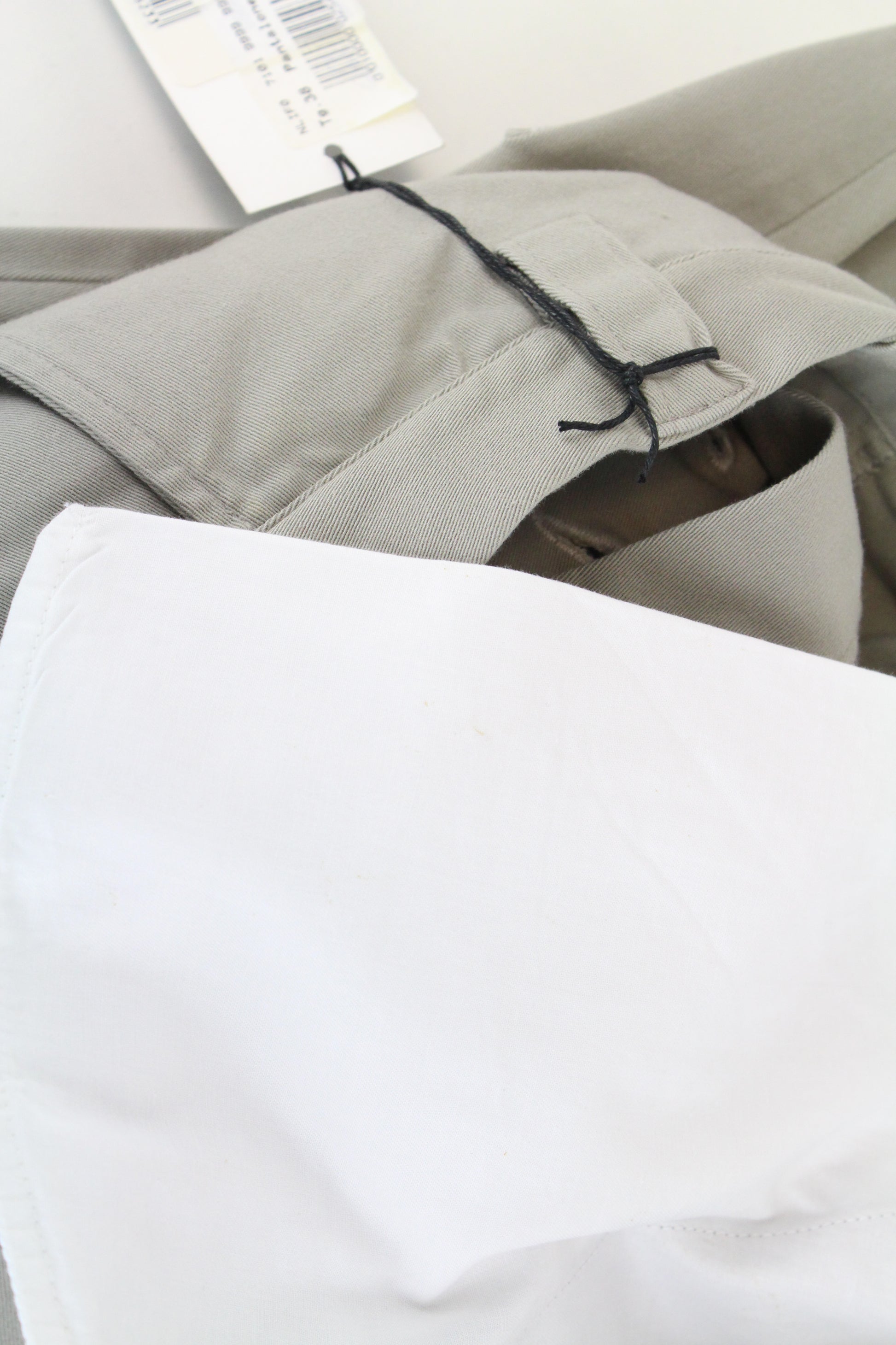 New with defects. Stains on the back, front and lining. Pulled thread on the right leg at the back. Please see added photos.