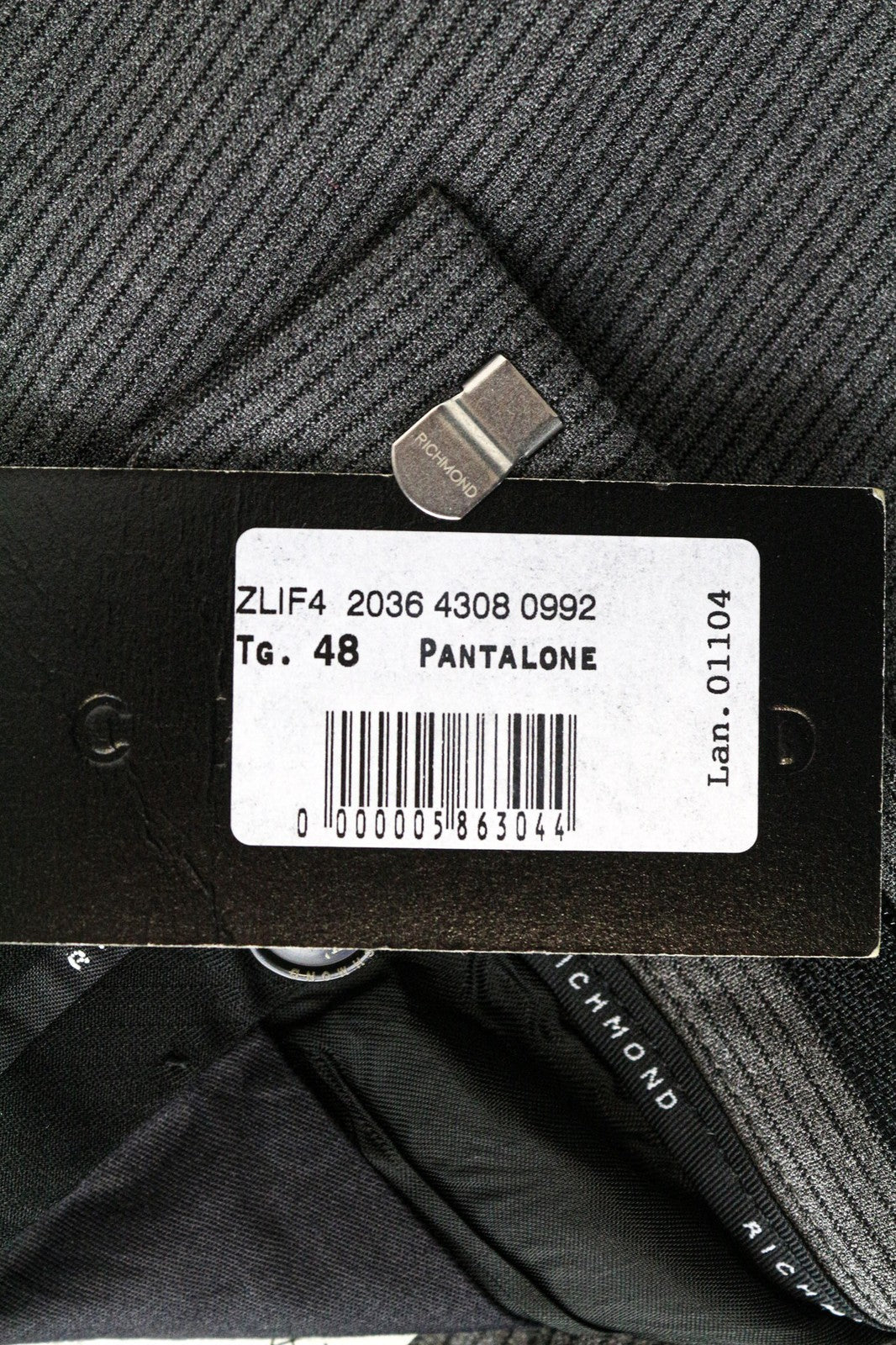 RICHMOND Men's Trousers 48 Grey Pleated Striped Stretch Fabric Classic Formal