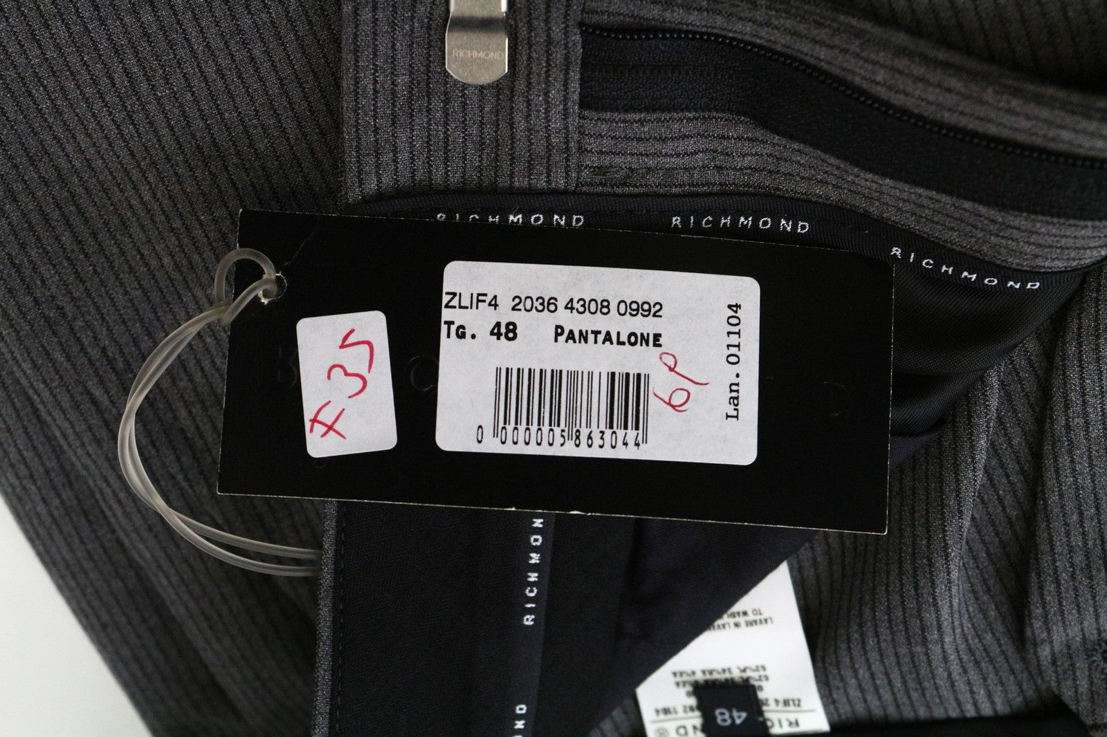 RICHMOND vyriškos kelnės 48 pilkos dryžuotas raštas tamprus klostuotas klasikinis dizainas