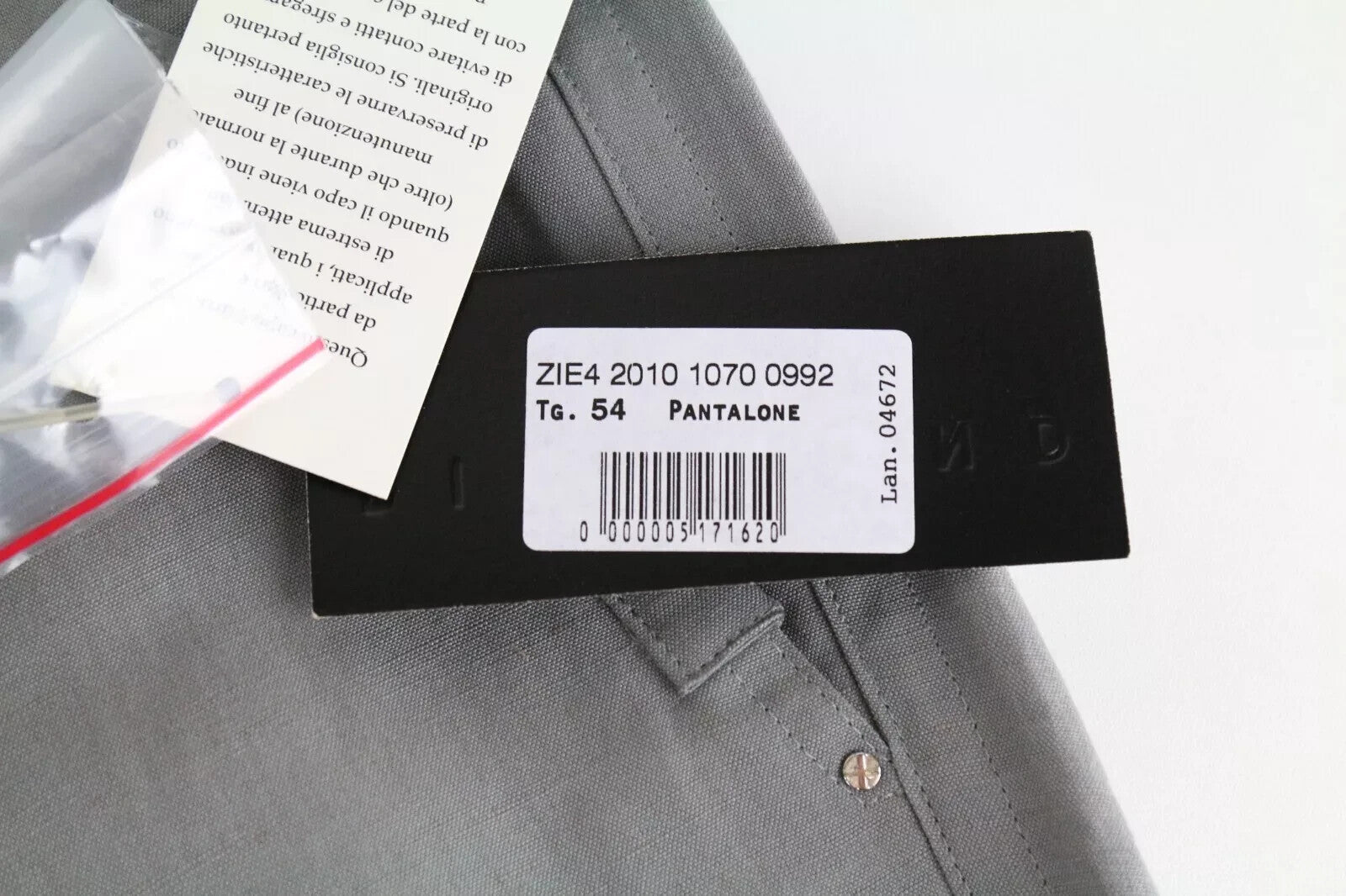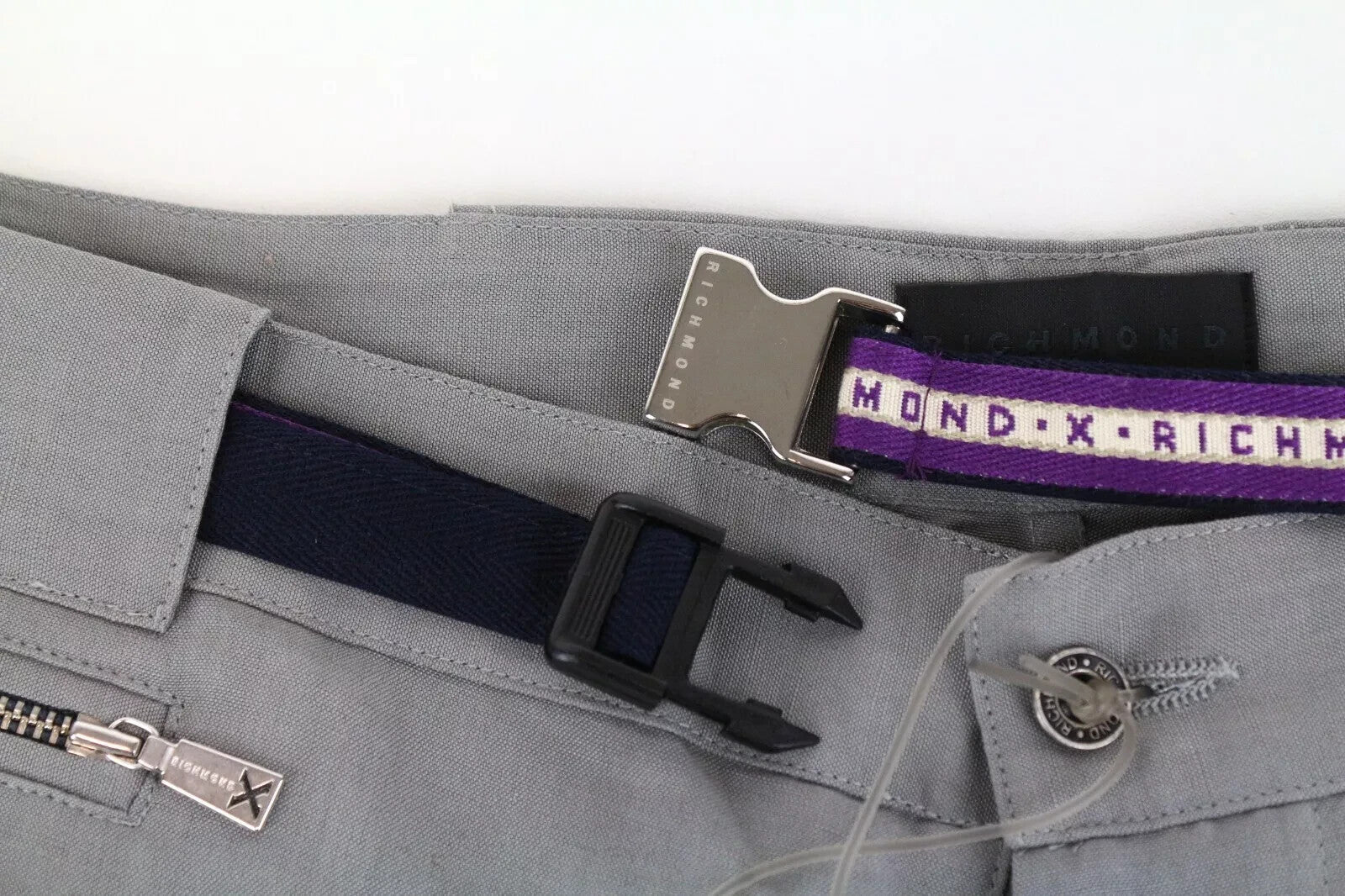 RICHMOND Men's Trousers 54 Flat Front Grey Linen Blend Belted Casual