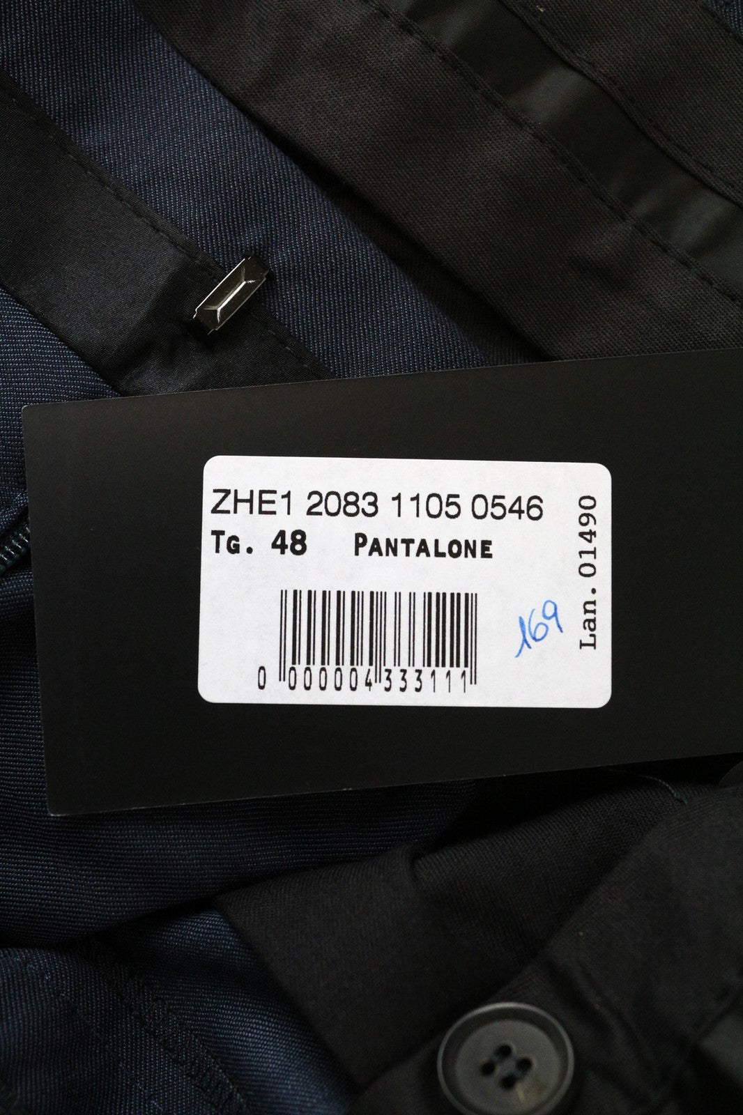 RICHMOND vyriškos kelnės IT48 mėlynos grynos vilnos melanžo klasikinės plokščia priekine dalimi