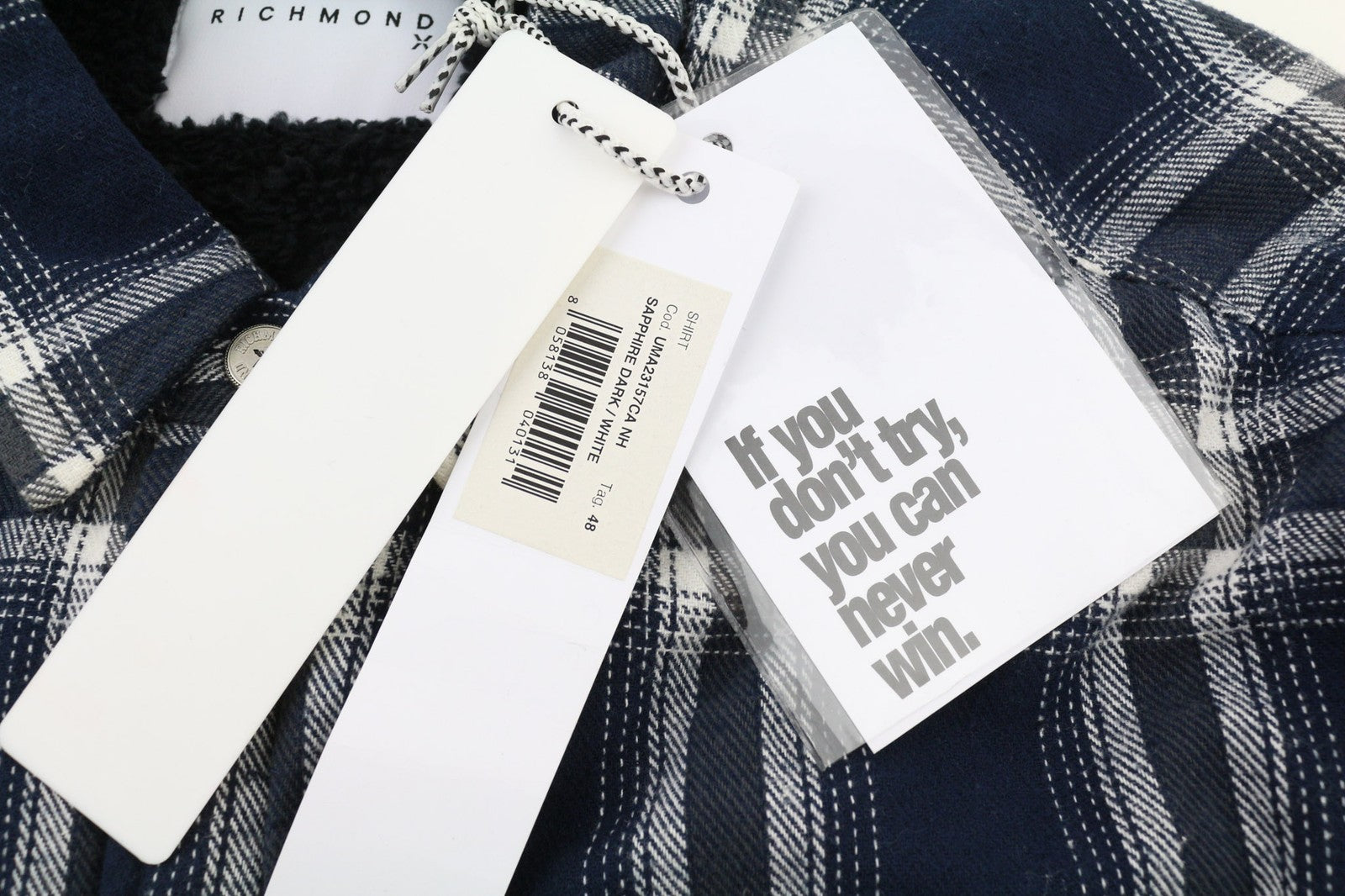 RICHMOND UMA23157CA vyriškas marškinių tipo švarkas ~L languotas su šerpų pamušalu ir užlopytinėmis kišenėmis