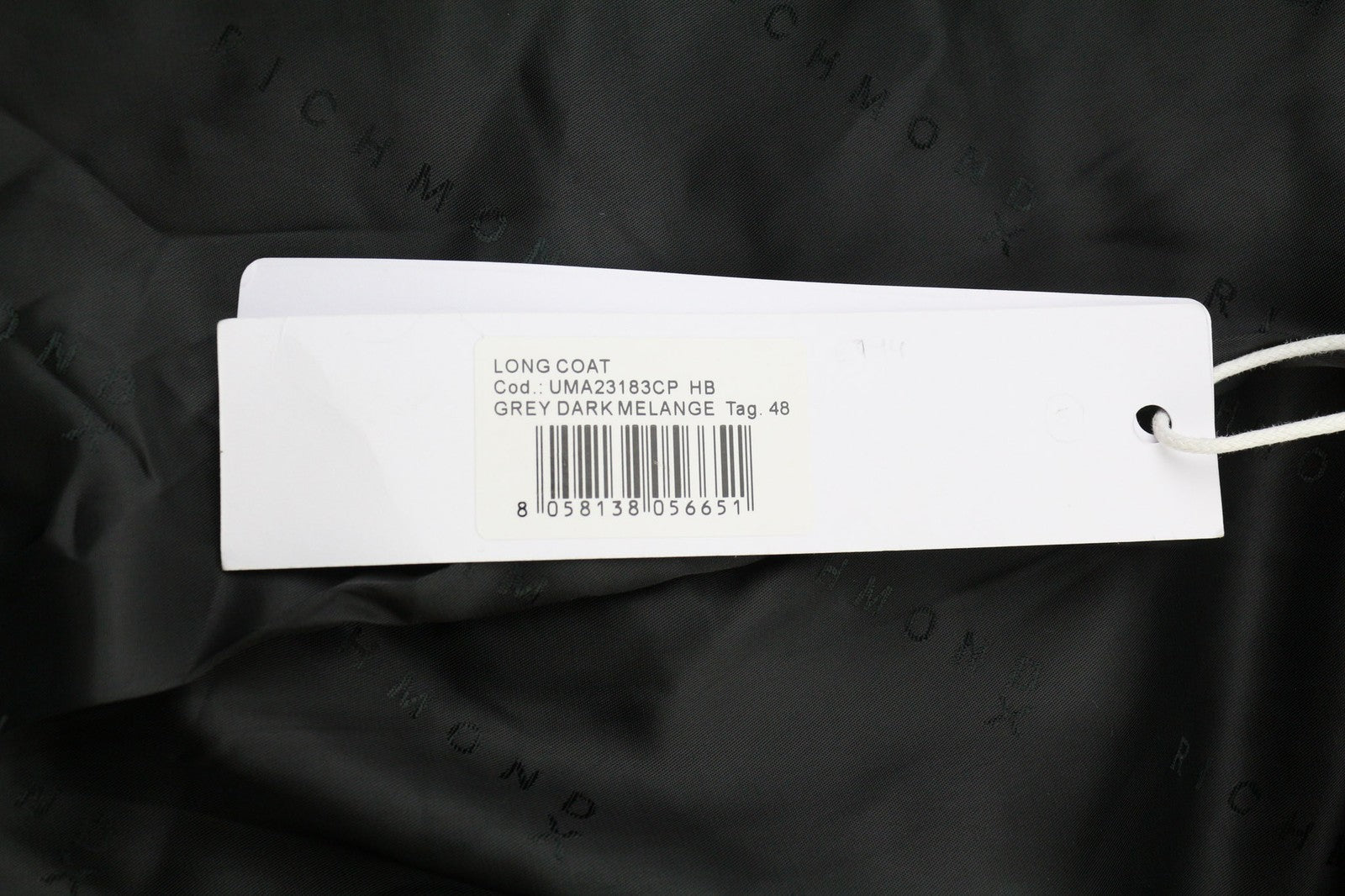 RICHMOND UMA23183CP vyriškas vilnos mišinio paltas M, pilkas, su išpjova atvartu, dviguba eilė