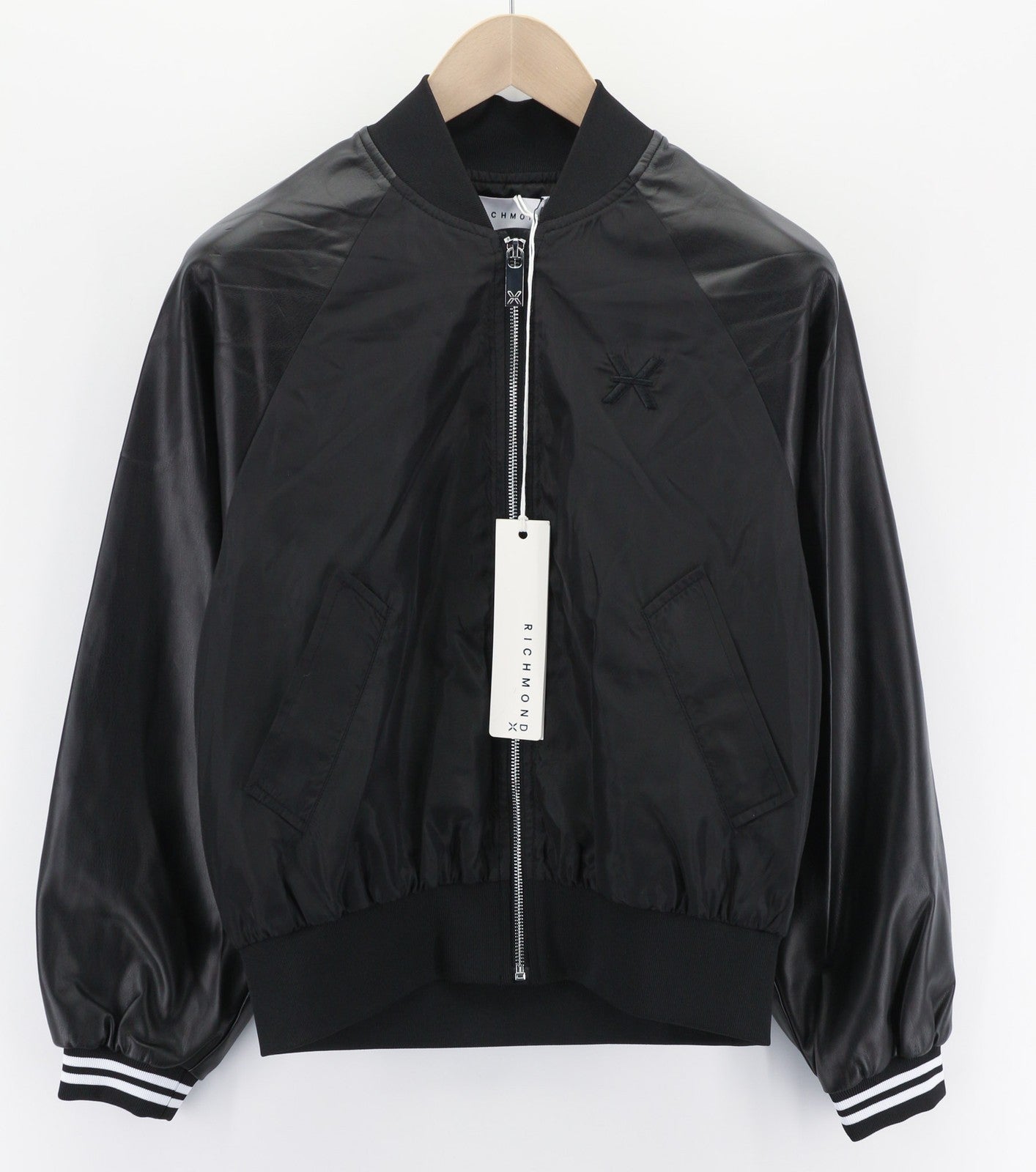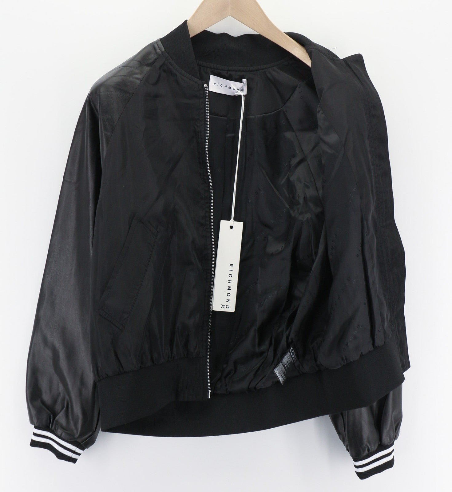 RICHMOND moteriška bomber striukė S juoda vaškuota lengva logotipu kišenės laisvalaikio stiliaus