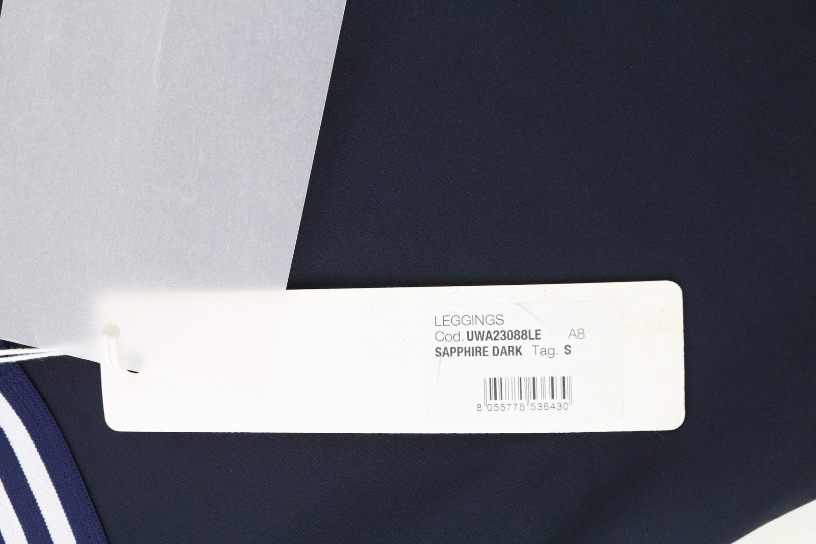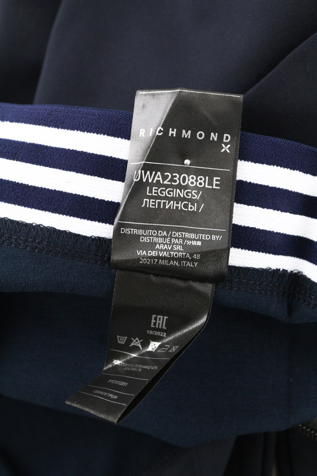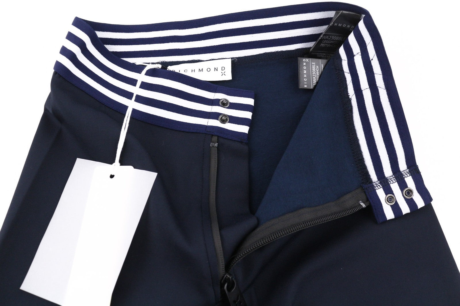 RICHMOND moteriškos tamprės S dydžio safyro mėlynos spalvos, tamprios, aukštu juosmeniu, užtrauktuku ir logotipu.