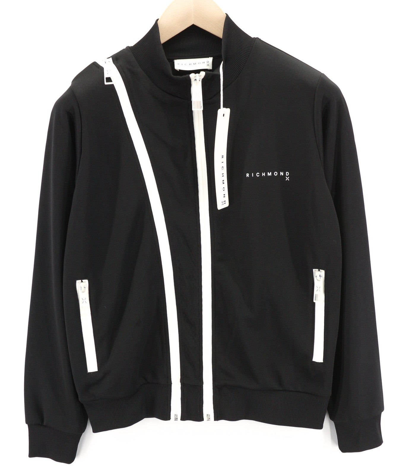 RICHMOND moteriškas džemperis su užtrauktuku ir juodu tinklelio raštu, aukšta apykakle ir kišenėmis. S dydžio.