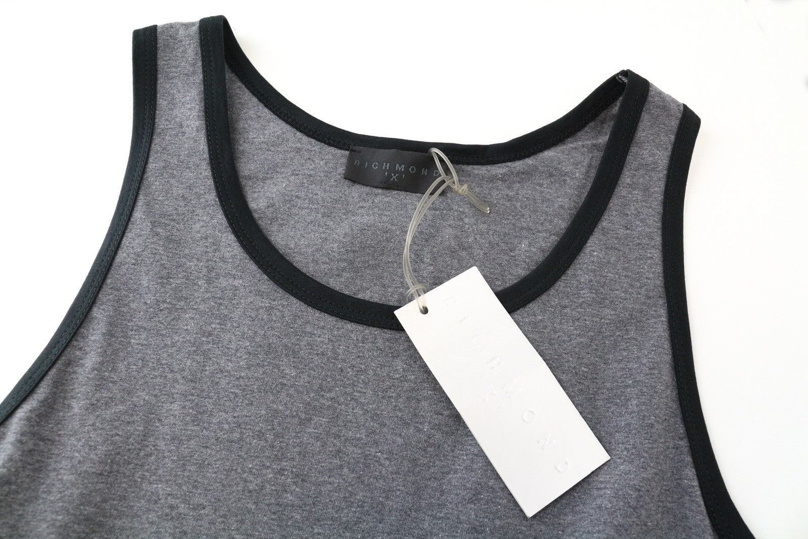 RICHMOND X vyriški marškinėliai ~L tamsiai pilki apvalios apykaklės be rankovių su raštuotu melanžo raštu nugaroje