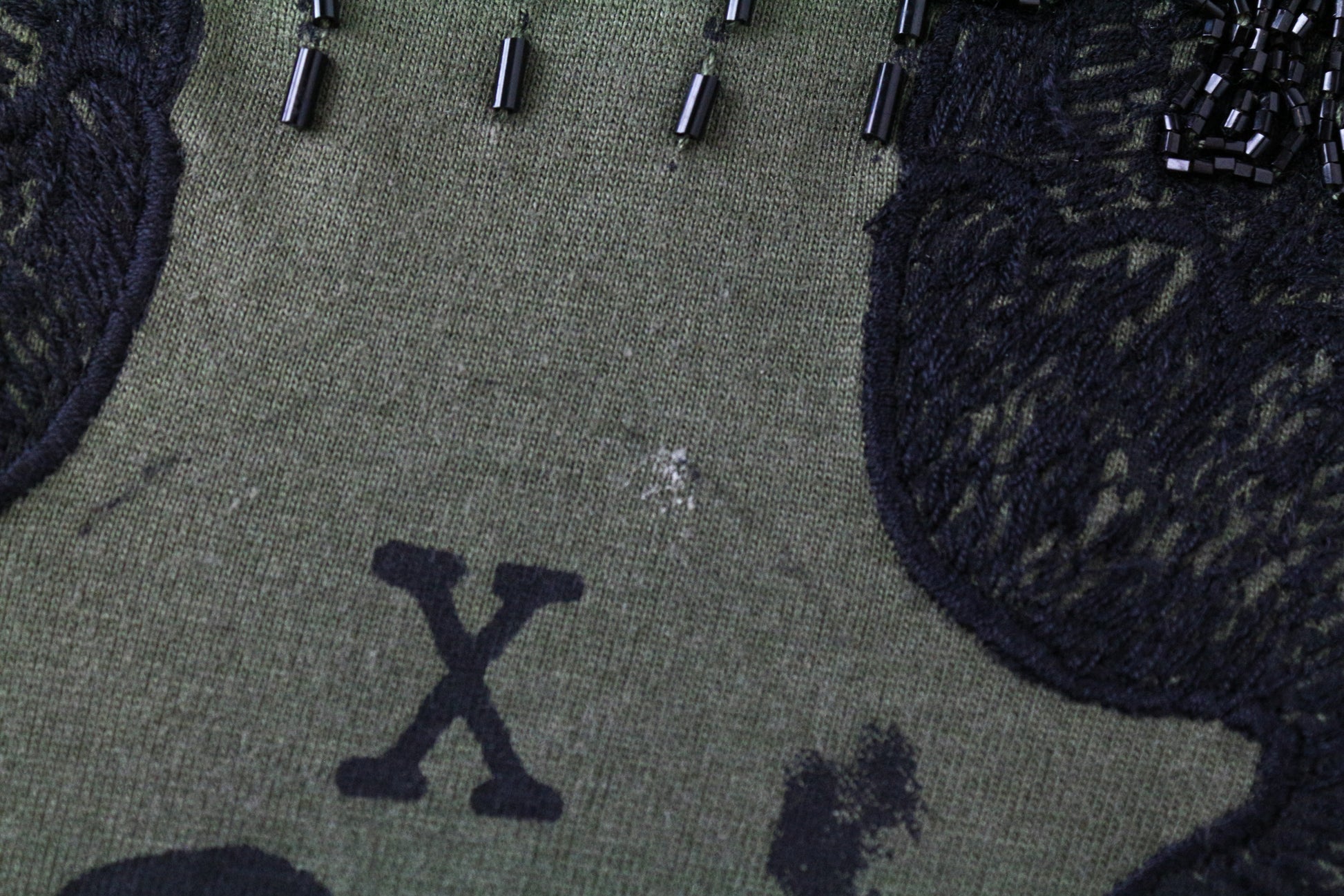 RICHMOND X Men's T-Shirt L Printed Beaded Front Khaki Green Sleeveless