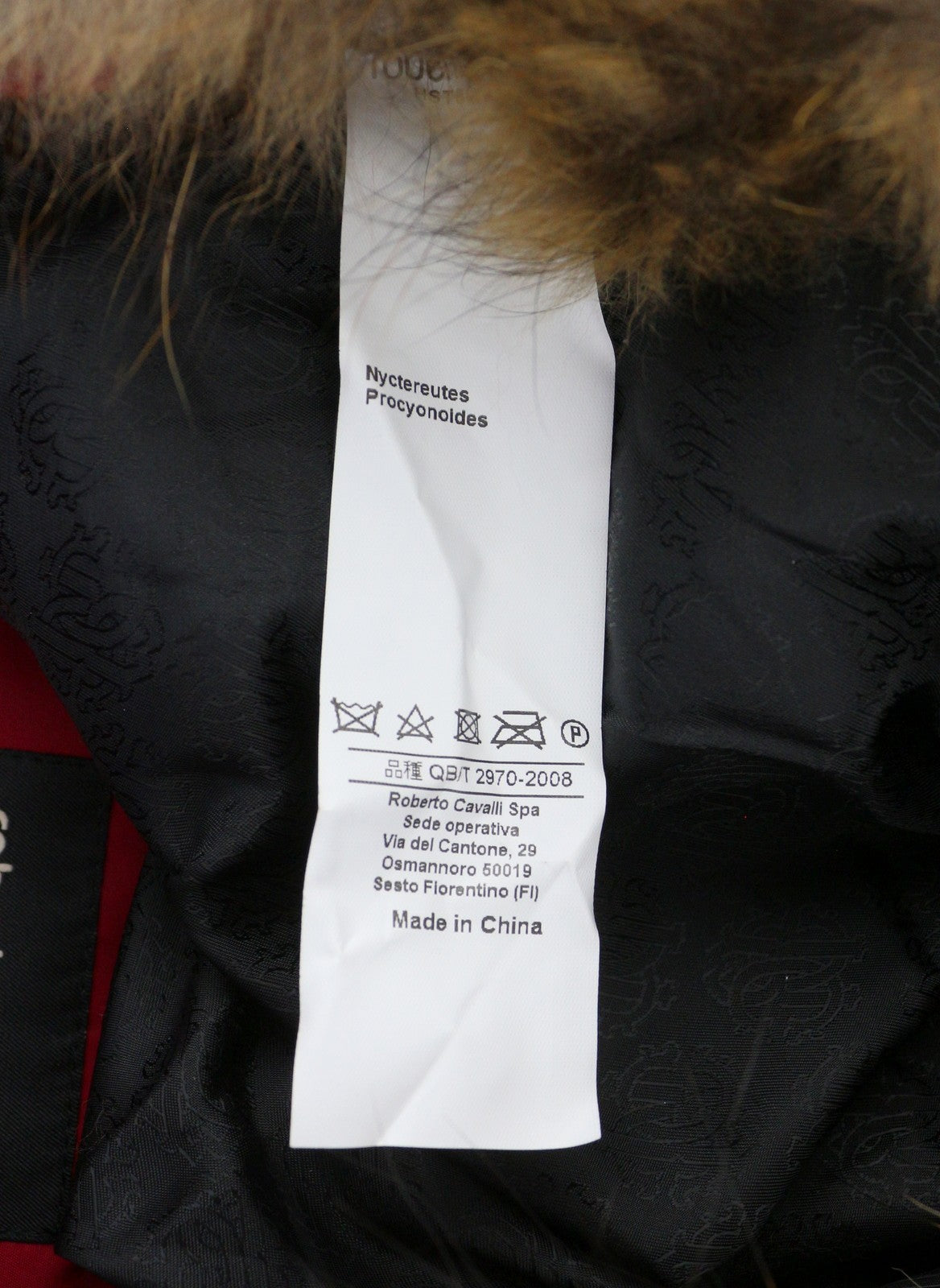 ROBERTO CAVALLI vyriška striukė L, raudona, su pilnu užtrauktuku, paminkštinta meškėno kailio parka su gobtuvu RRP560