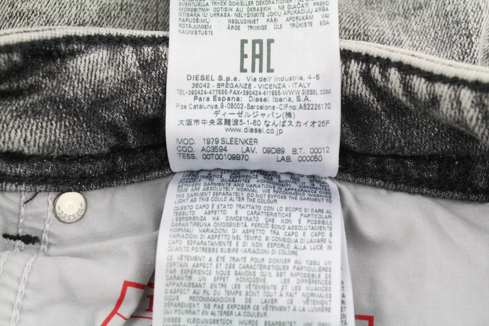 Rekomenduojama mažmeninė kaina – 195 € DIESEL 1979 Sleenker 09D89 vyriški džinsai W34/L32, tamprūs, aptempti, pilki