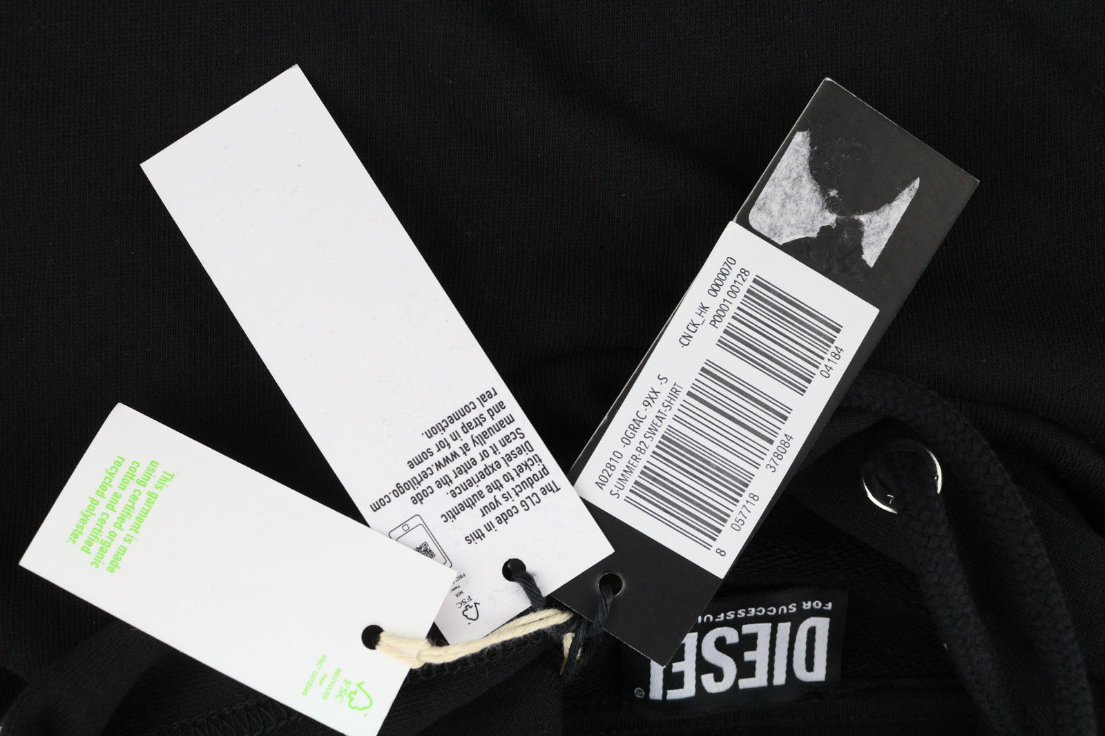 RRP150 DIESEL S-Ummer-B2 džemperis su gobtuvu S dydžio, juodas, megztinis su kengūros kišene, unisex