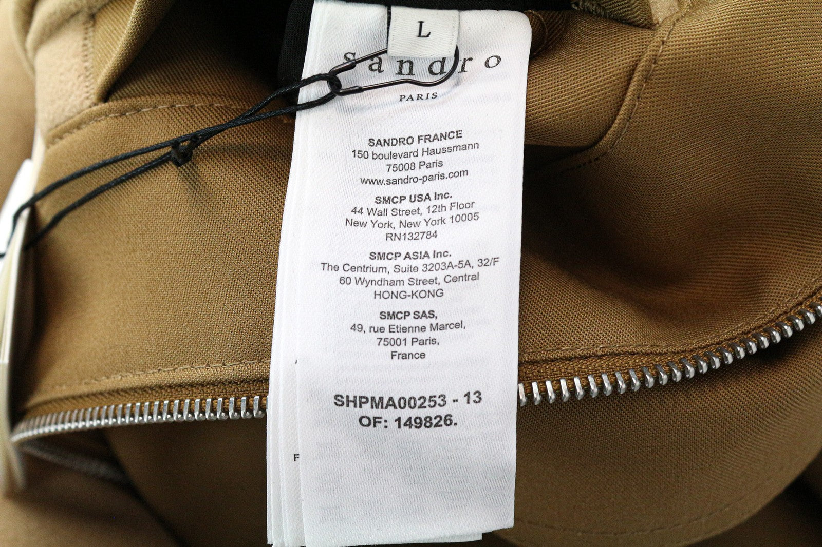 SANDRO vyriška tamsiai ruda medvilninė laisvalaikio striukė su gobtuvu, L, vienaeilis stilius