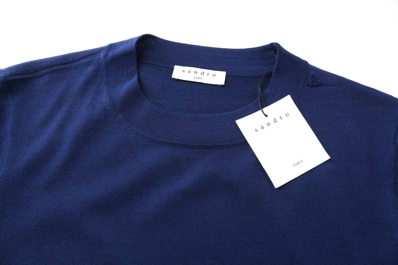 SANDRO vyriškas XS dydžio tamsiai mėlynas plonas grynos vilnos megztinis apvalia kaklo apykakle