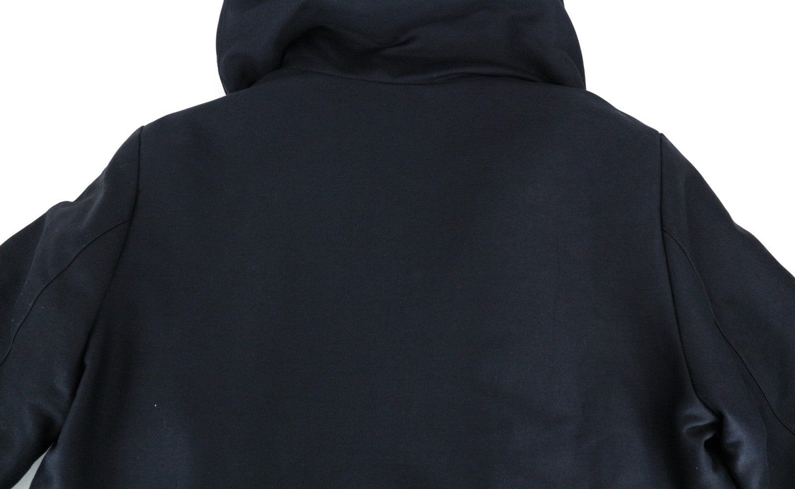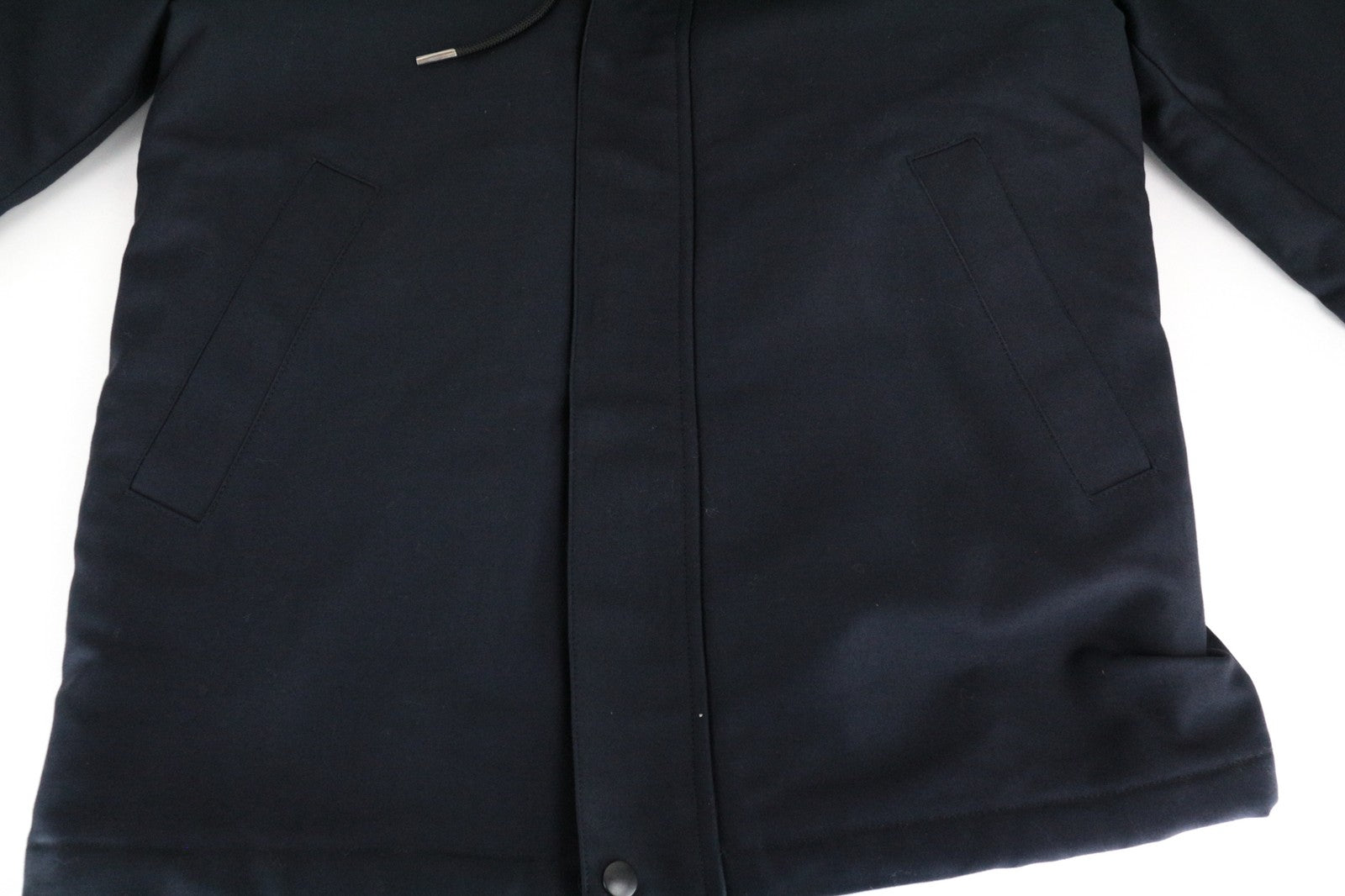 SANDRO S vyriška striukė su tamsiai mėlyna spalva, klasikinė, su gobtuvu, dirbtinio kailio denio parka, grynos medvilnės