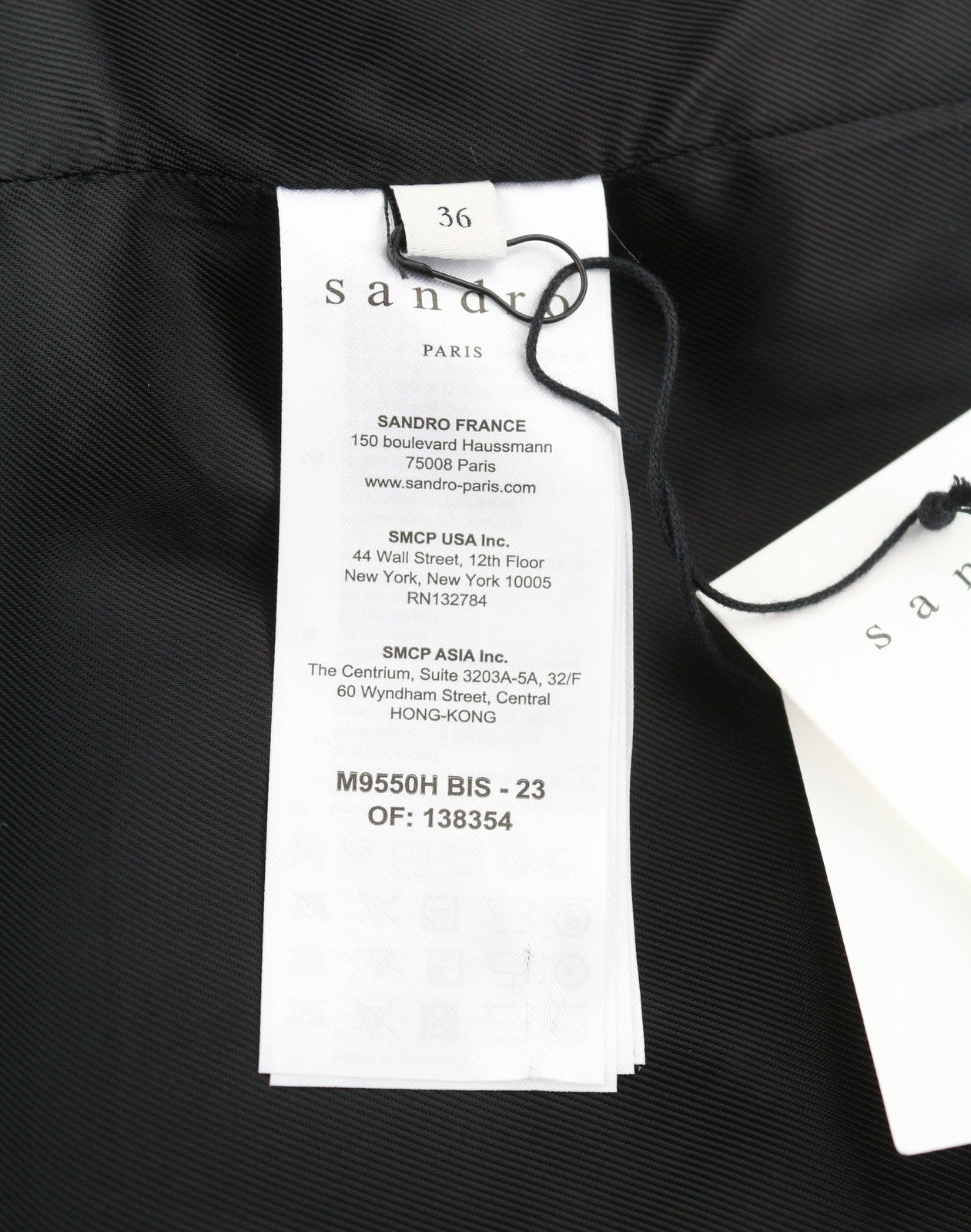 SANDRO Women Coat EU36 Grey Melange Wool Blend Hooded Lightweight Mid-Length