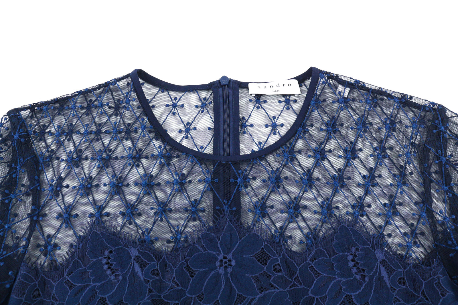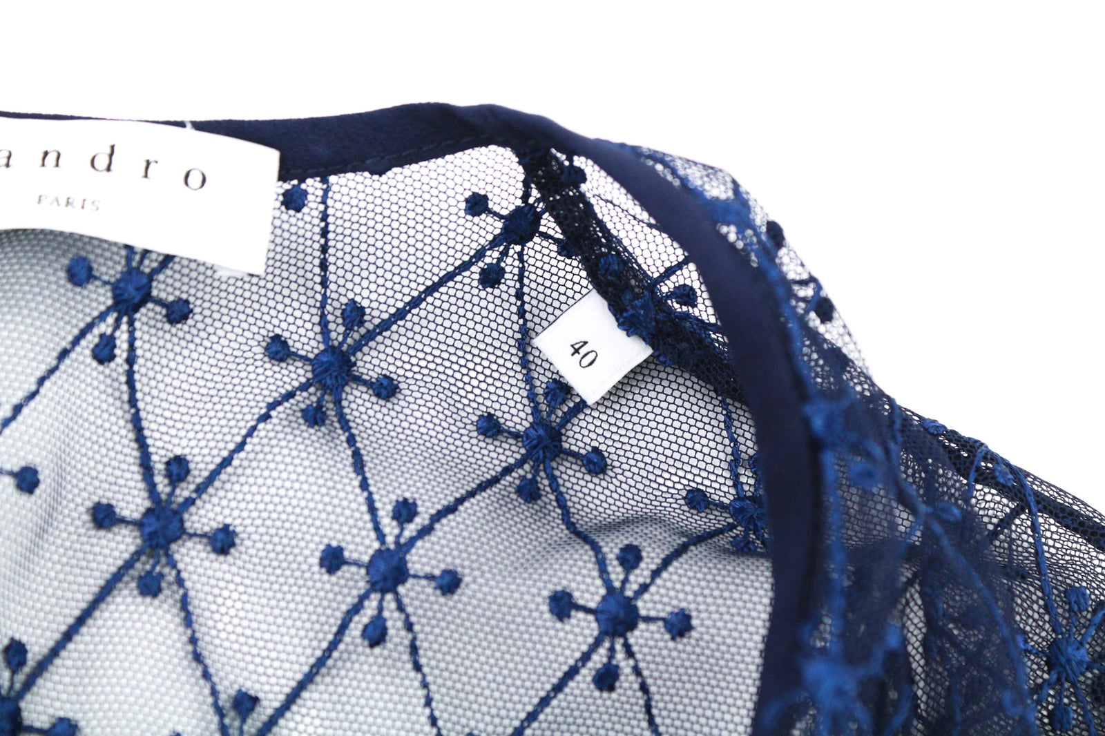 SANDRO moteriška suknelė 40 tamsiai mėlyna ilgomis rankovėmis, pamušalu, suvarstoma nugara, užtrauktuku.