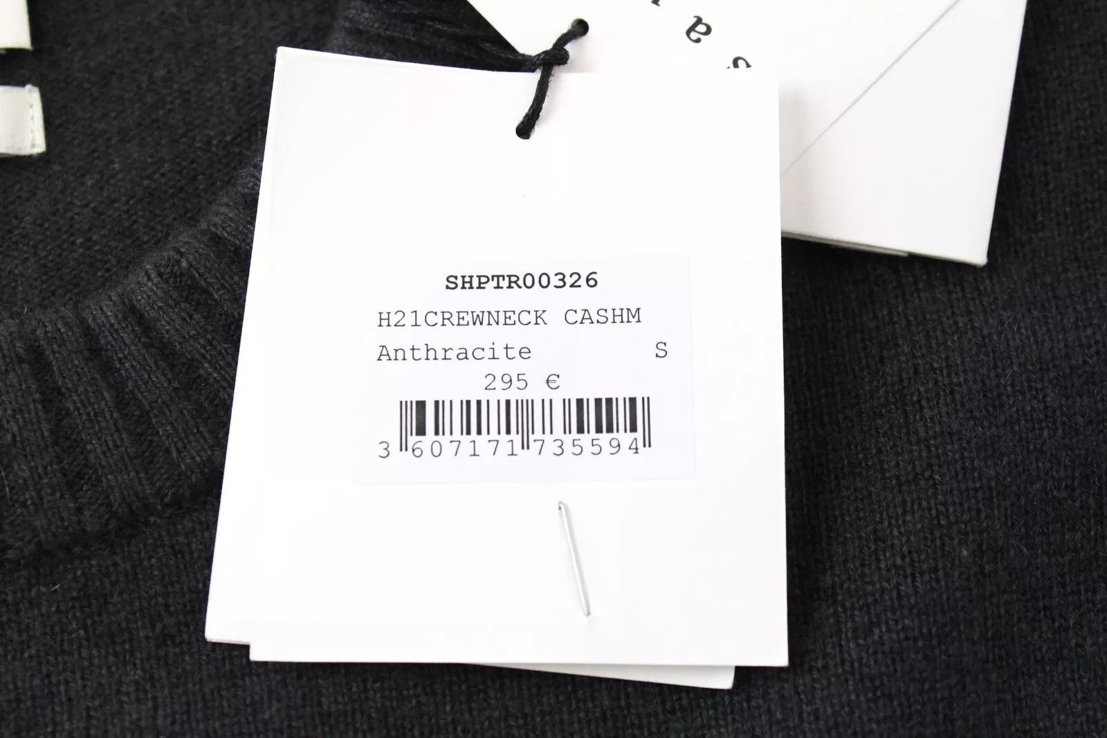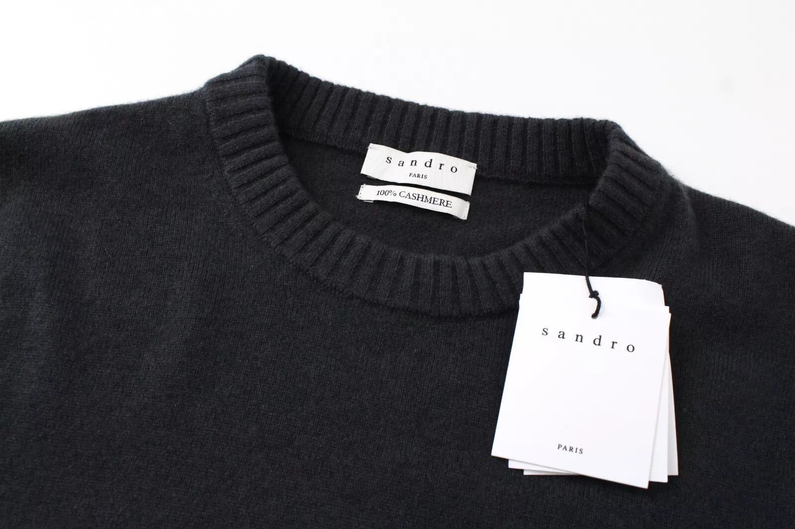 SANDRO moteriškas megztinis S dydžio kašmyro aptempto mezgimo tamsiai pilkas megztinis apvalia kaklo iškirpte, rekomenduojama kaina 295 €