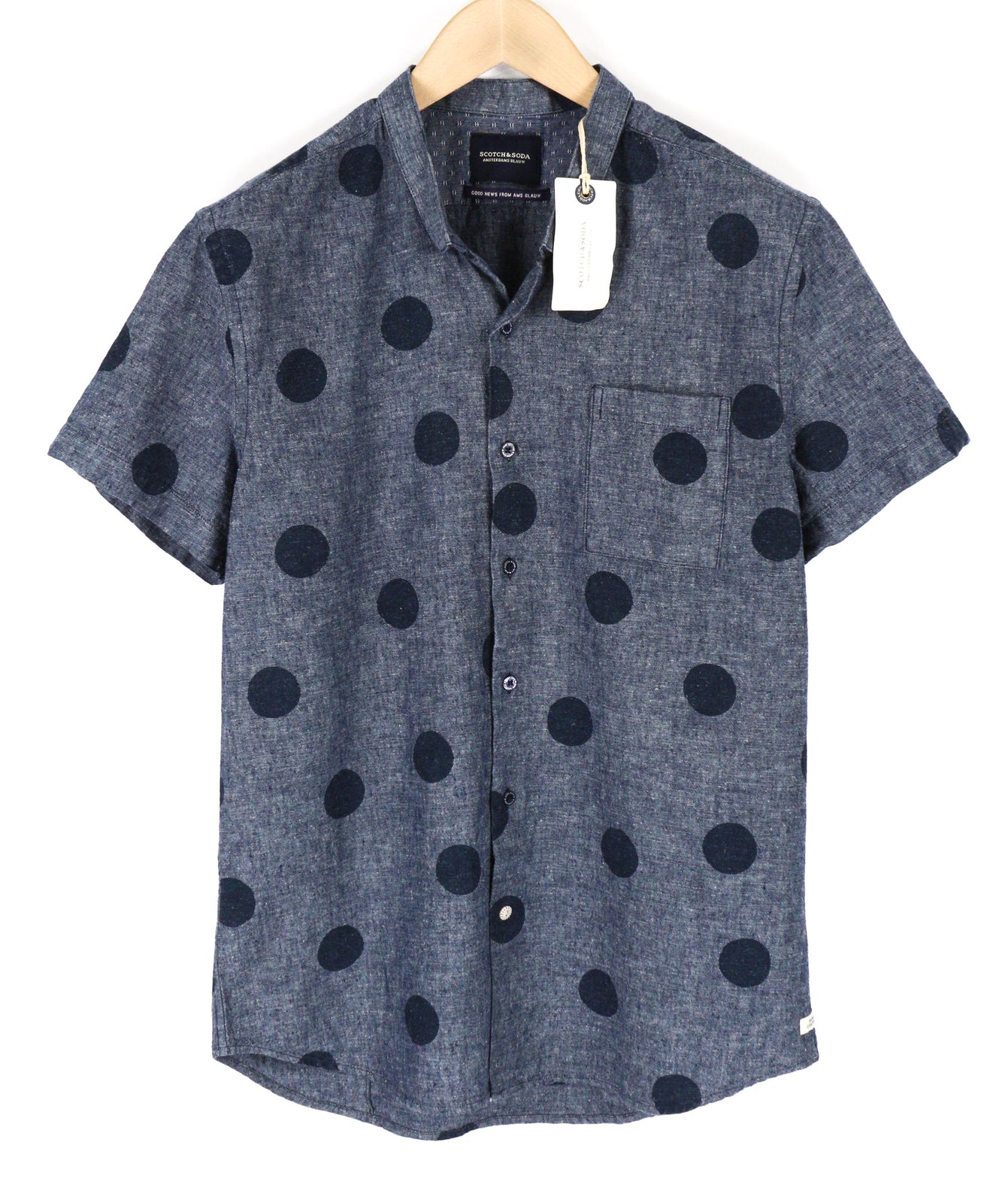 SCOTCH & SODA Ams Blauw vyriški marškinėliai ~M/L mėlyni taškuoti trumpomis rankovėmis su sagomis