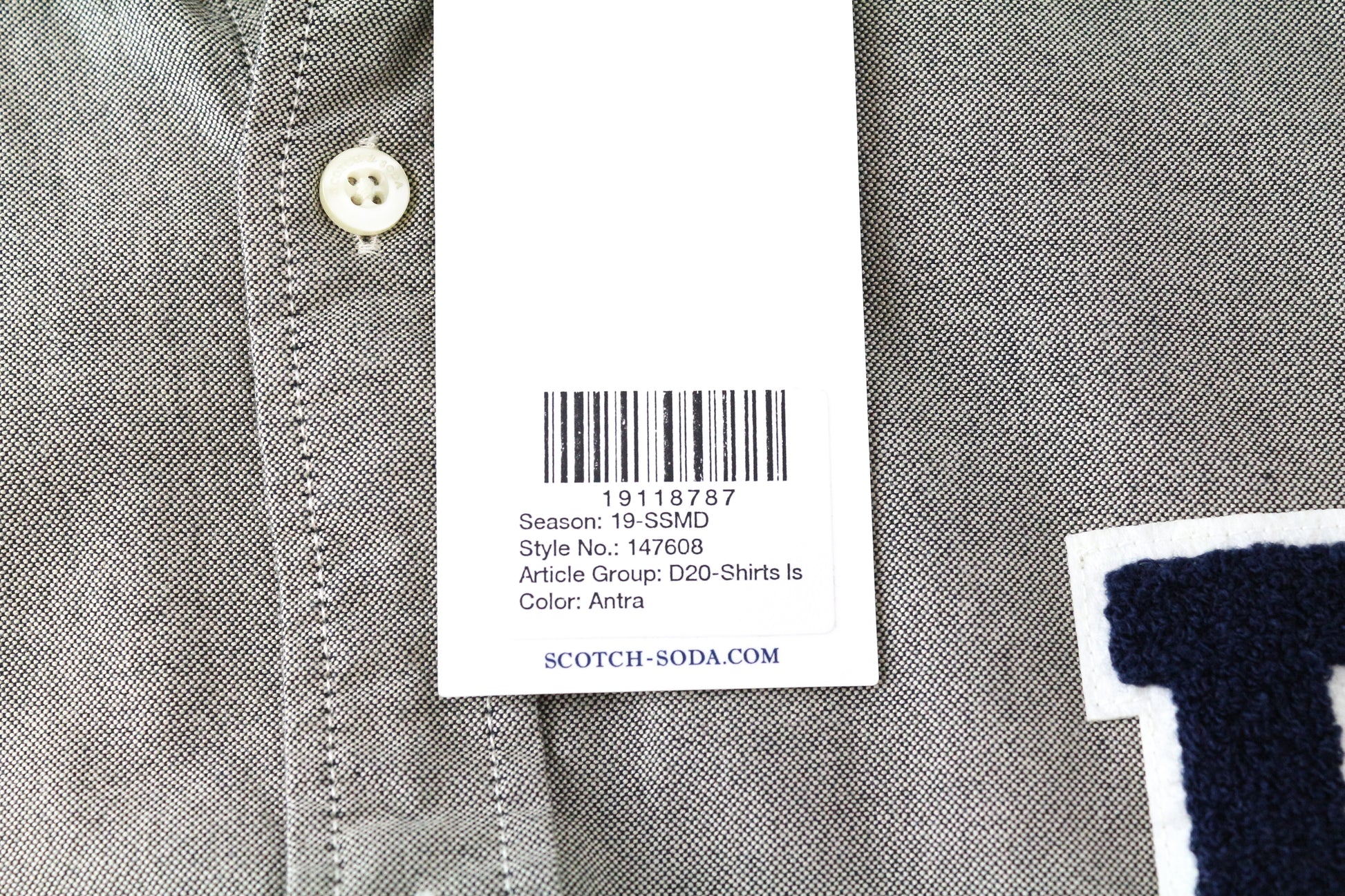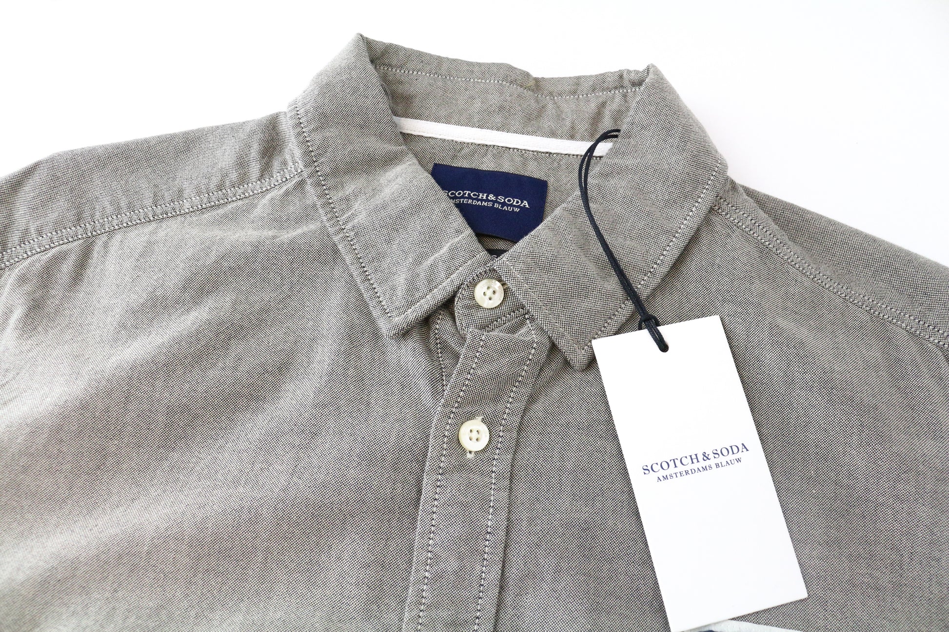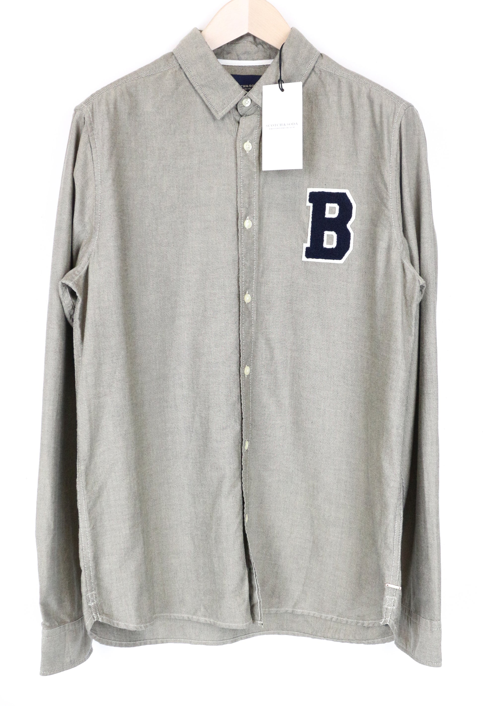SCOTCH & SODA Ams Blauw Shirt Men's ~XL Long Sleeve Green B Patch Button-Up