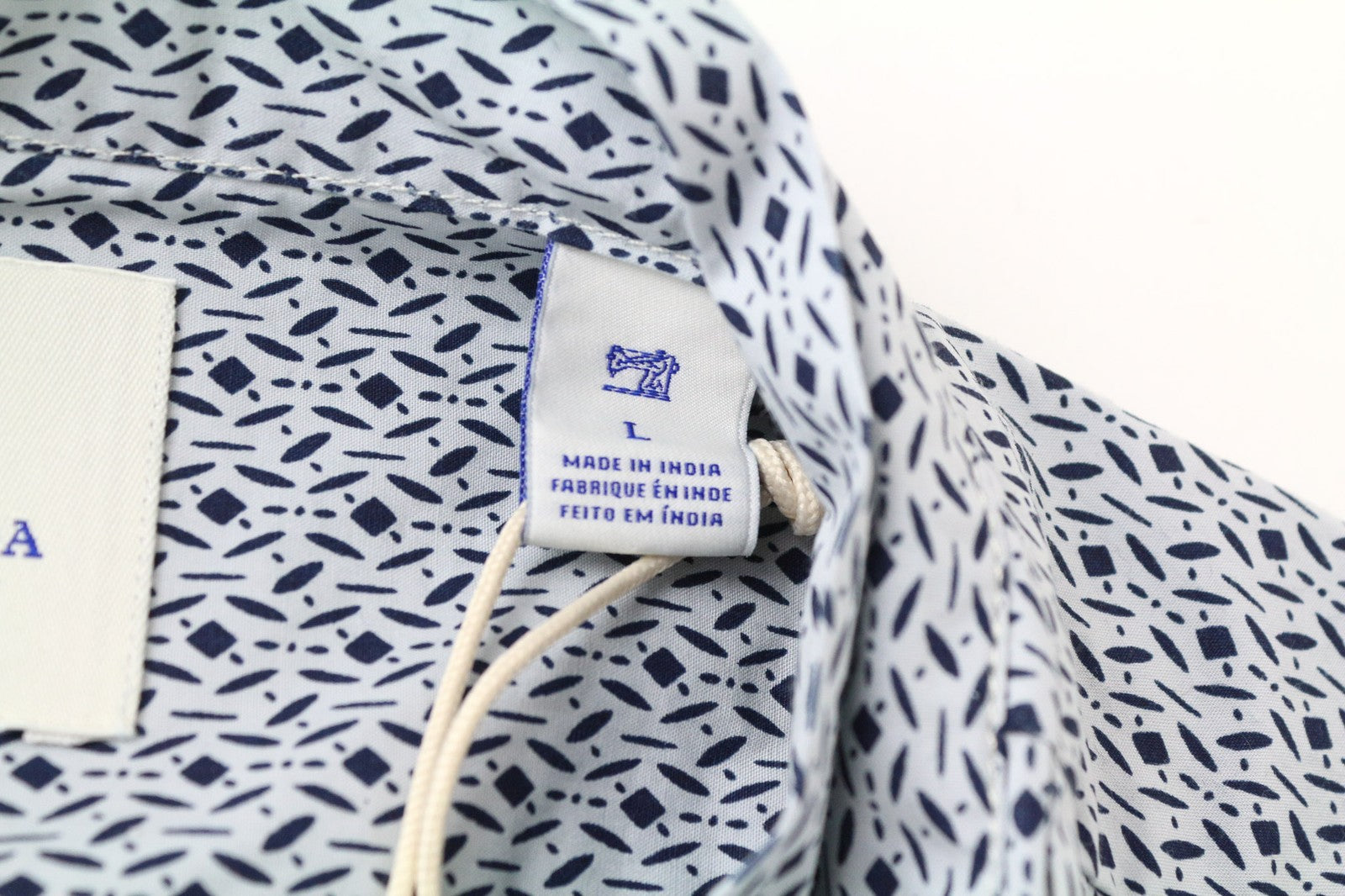 SCOTCH & SODA Ams Couture vyriški L dydžio balti mėlyni grynos medvilnės klostuoti marškiniai V formos iškirpte