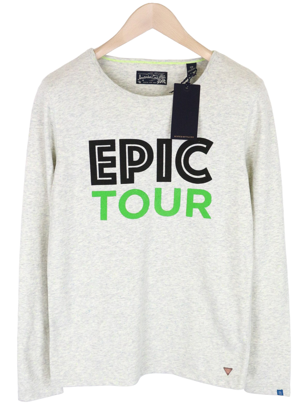 SCOTCH & SODA Ams Couture vyriškas džemperis su logotipu, pilkas medvilnės mišinio megztinis, S dydžio