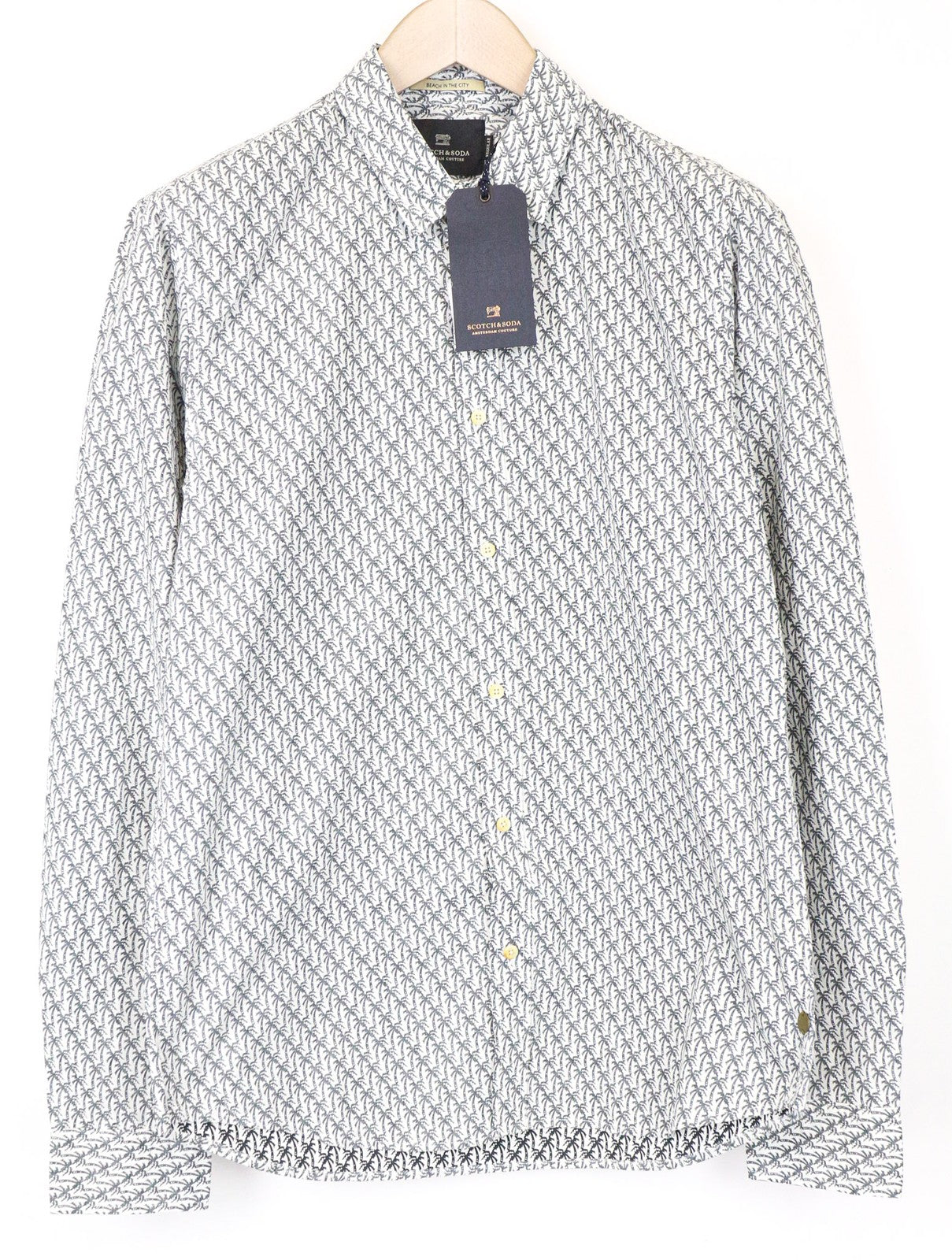 SCOTCH & SODA Ams Couture vyriški marškinėliai M balti delnų rašto medvilniniai ilgomis rankovėmis
