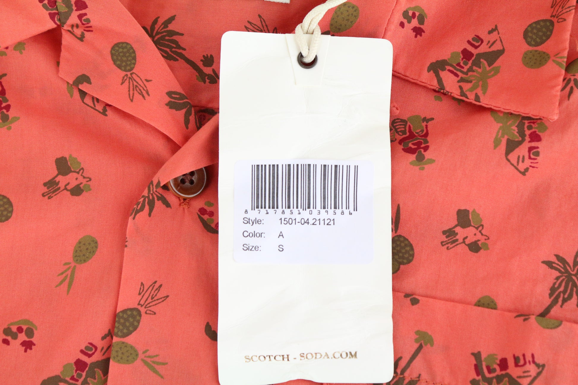 SCOTCH & SODA Ams Couture Shirt S Orange Pure Cotton Pattern Short Sleeve Men's