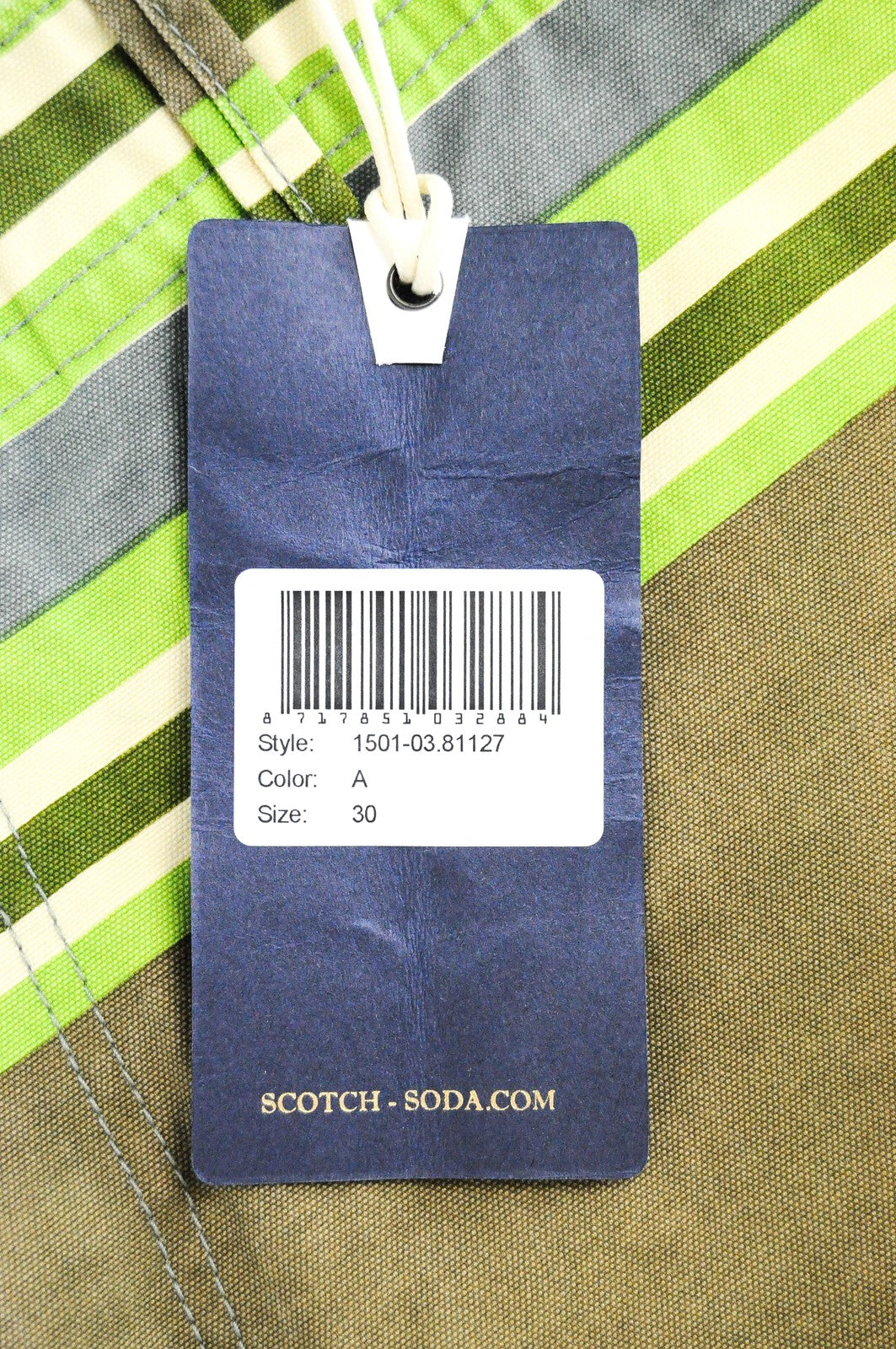 SCOTCH & SODA Couture W30 Green Mens Shorts Cotton Striped Lightweight
