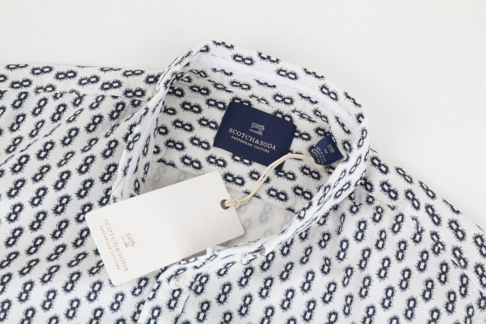 SCOTCH & SODA vyriški marškinėliai M su abstrakčiais raštais, išskleista apykakle, laisvalaikio stiliaus.