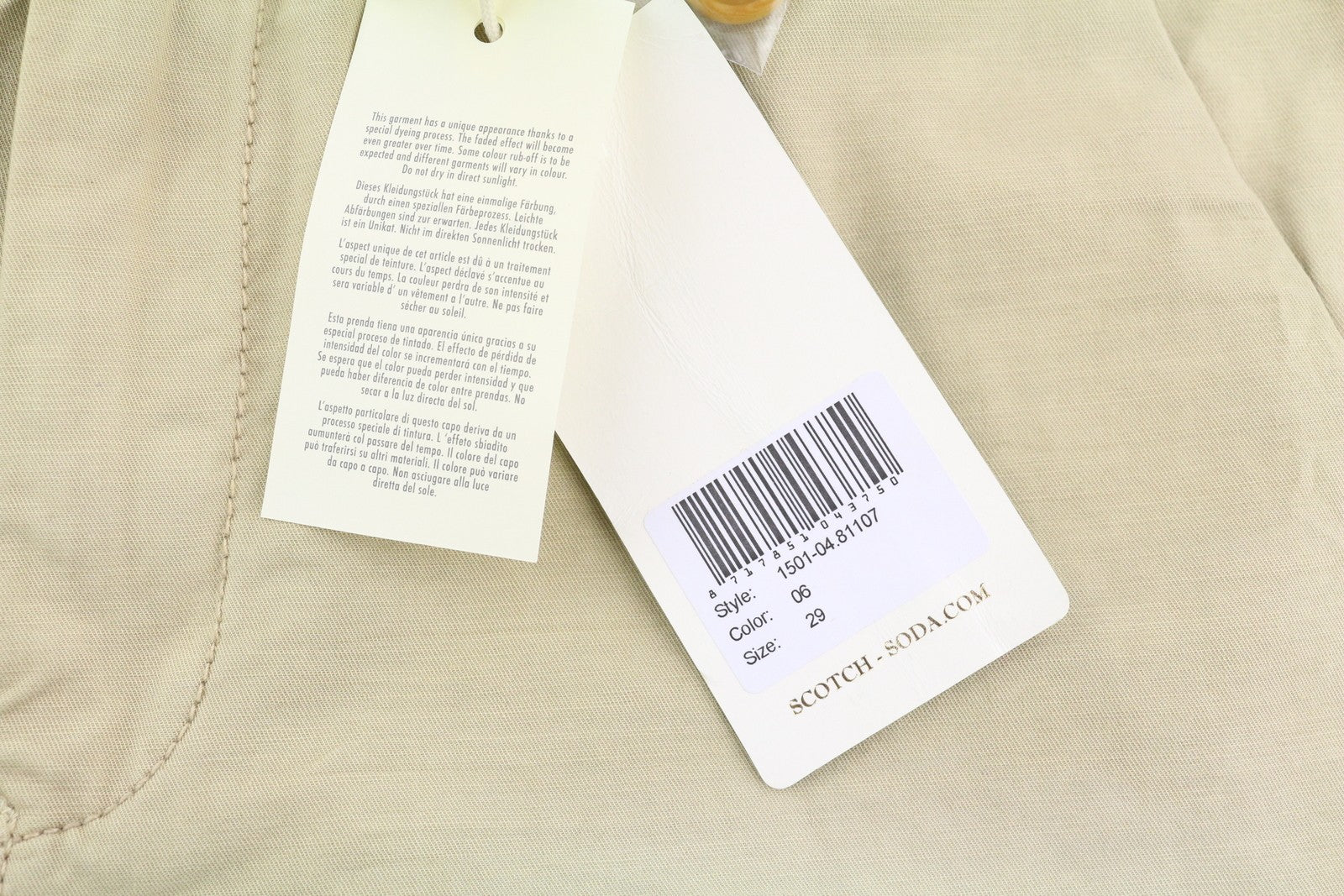 SCOTCH & SODA vyriški šortai W29 Chino, rudi, su atlenkiamu užtrauktuku ir logotipu, laisvalaikio stiliaus.