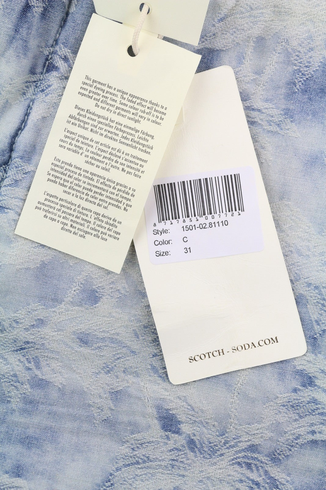 SCOTCH & SODA Men Shorts W31 Chino Washed Blue Embroidered Zip Fly Logo Casual