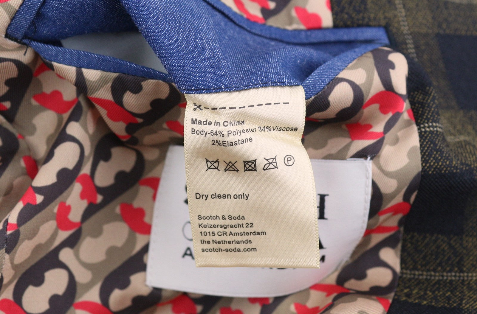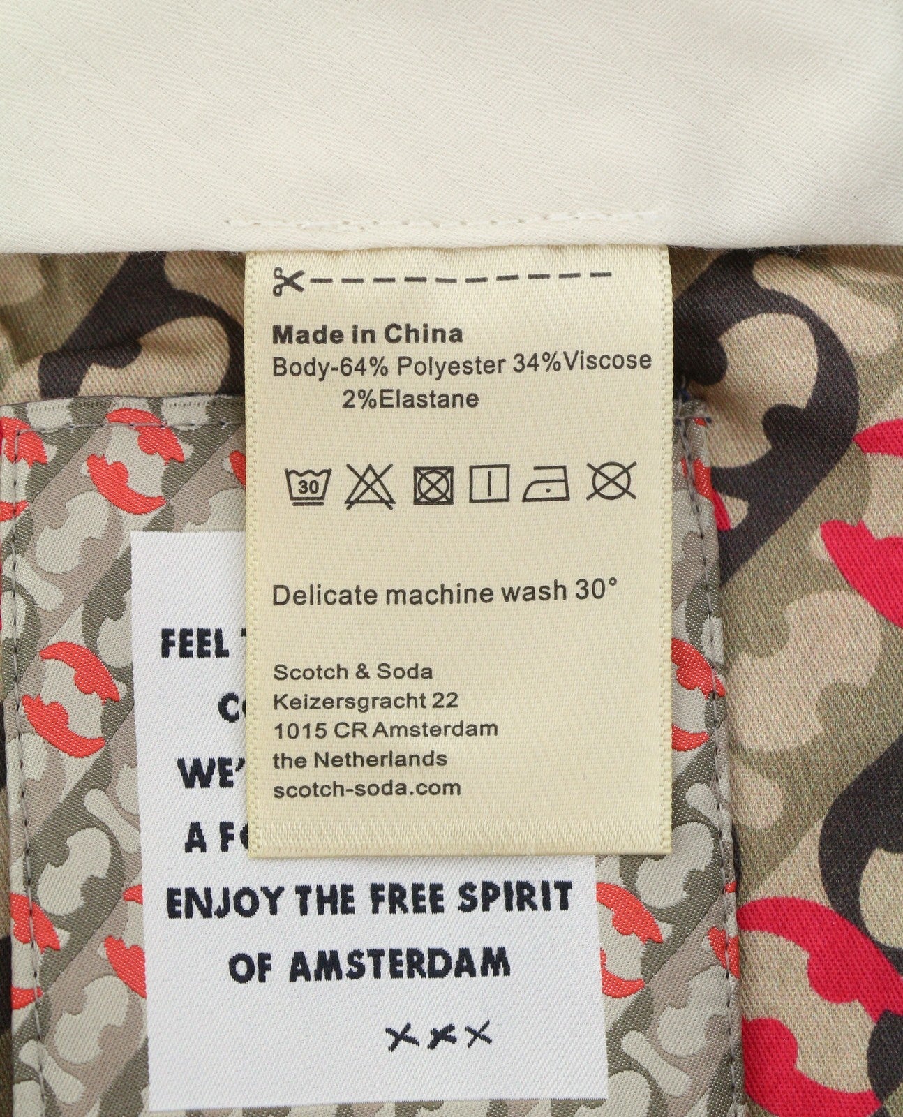 Material : 64% Polyester, 34% Viscose, 2% Elastane