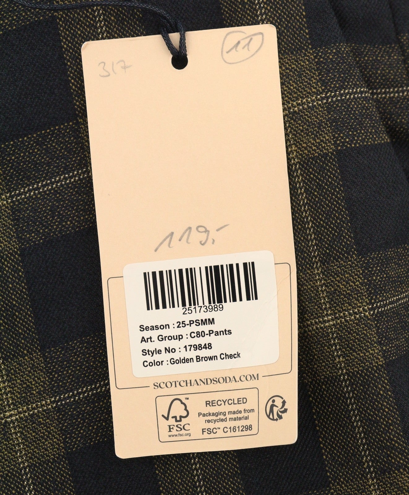 SCOTCH & SODA Men Suit M Golden Brown Check Yarn-Dyed Single Breasted 2PC