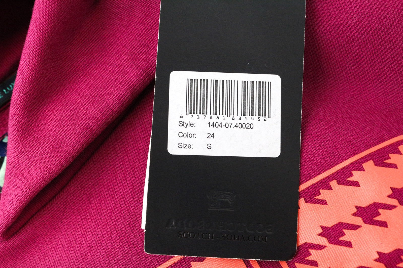 SCOTCH & SODA vyriškas džersio stiliaus džersio megztinis su gobtuvu ir grafiniu raštu, dažytas drabužių stiliumi. S dydis.