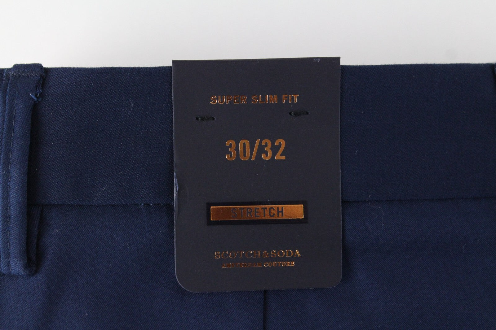 SCOTCH & SODA Mens W30/L32 Blue Super Slim Cotton Stretchy Mott Trousers