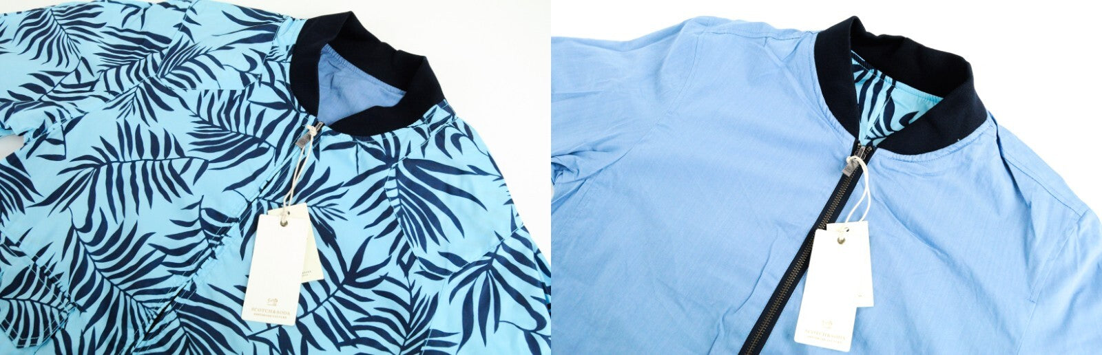 SCOTCH & SODA dvipusė striukė L mėlyna medvilninė lininė raštuota vyriška striukė su užtrauktuku