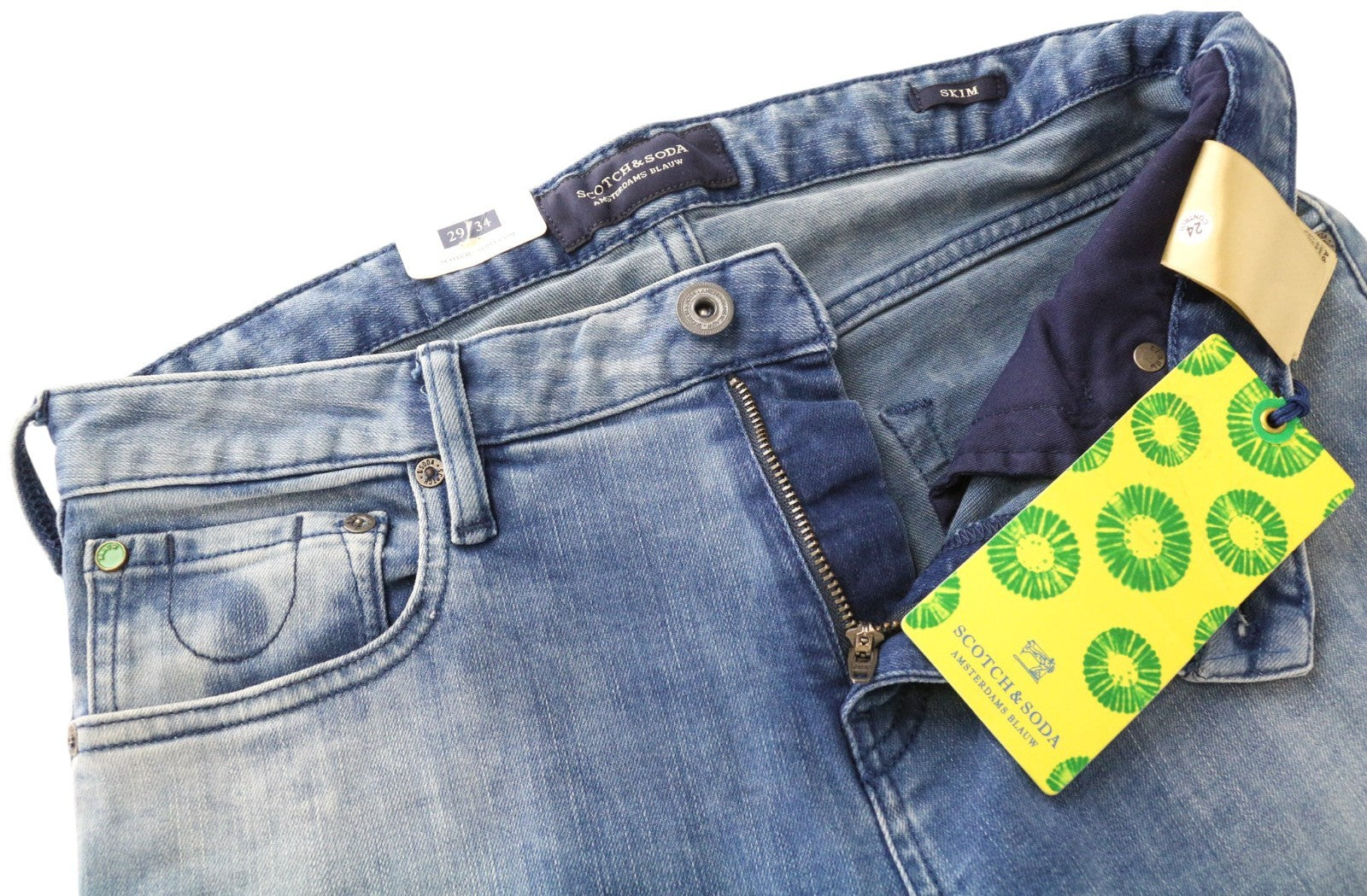 SCOTCH & SODA Skim vyriški W29/L34 aptempti mėlyni medvilniniai tamprūs blukinti džinsai