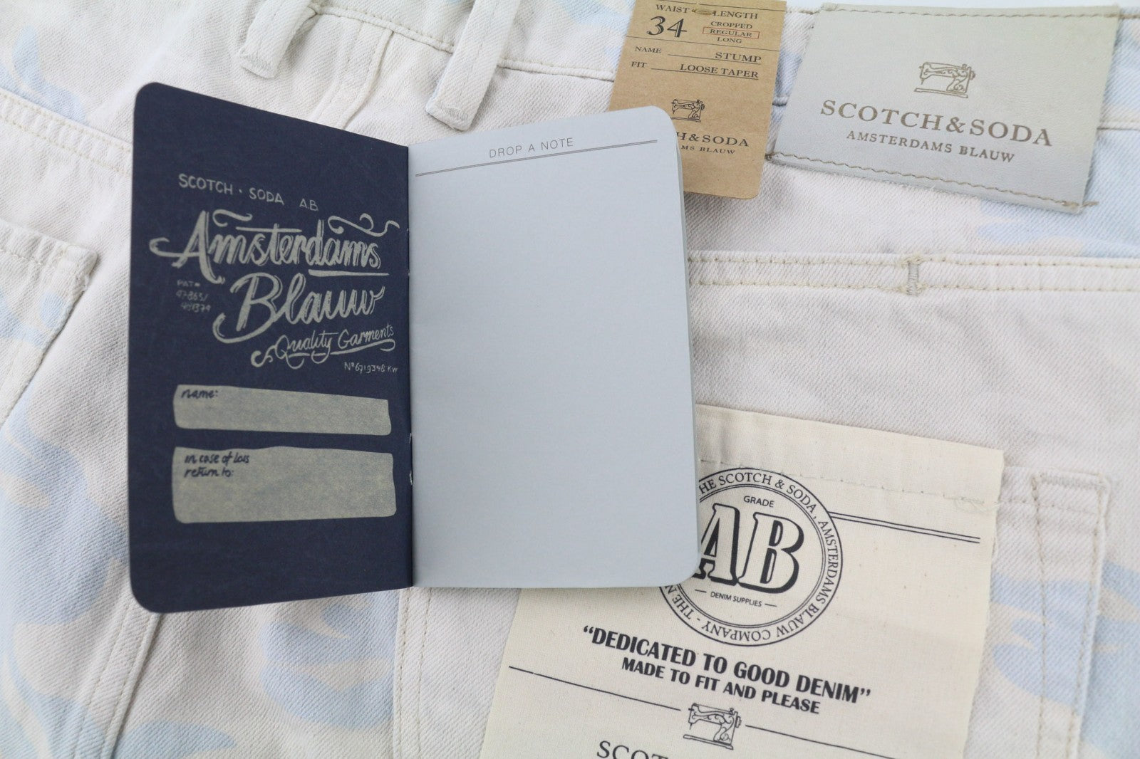 SCOTCH & SODA Stump vyriški W34 pilki medvilniniai laisvi siaurėjantys trumpinti raštuoti džinsai