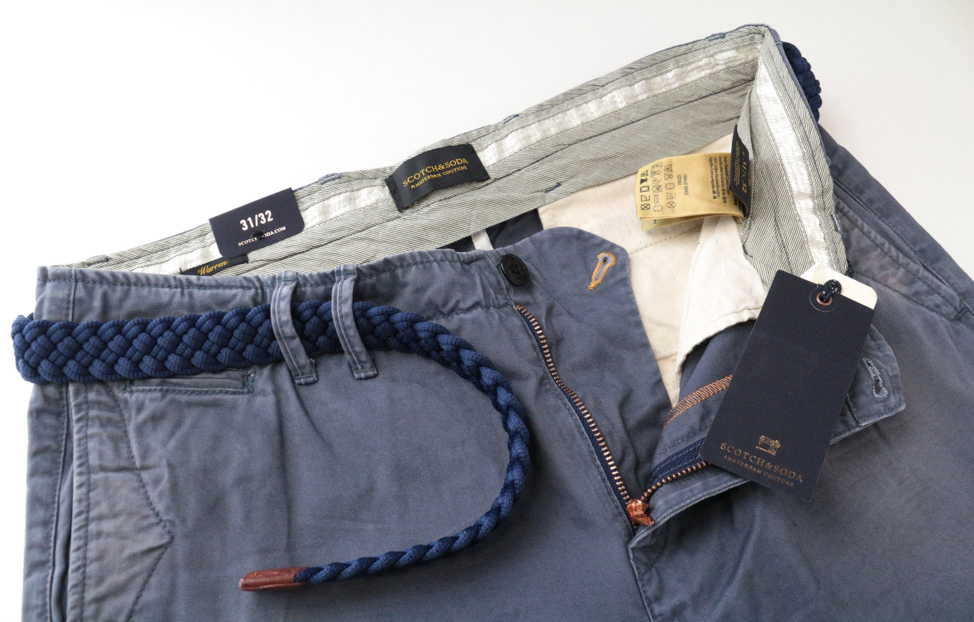 SCOTCH & SODA Warren Men's Trousers W32/L32 Relaxed Blue Cotton Slim Washed