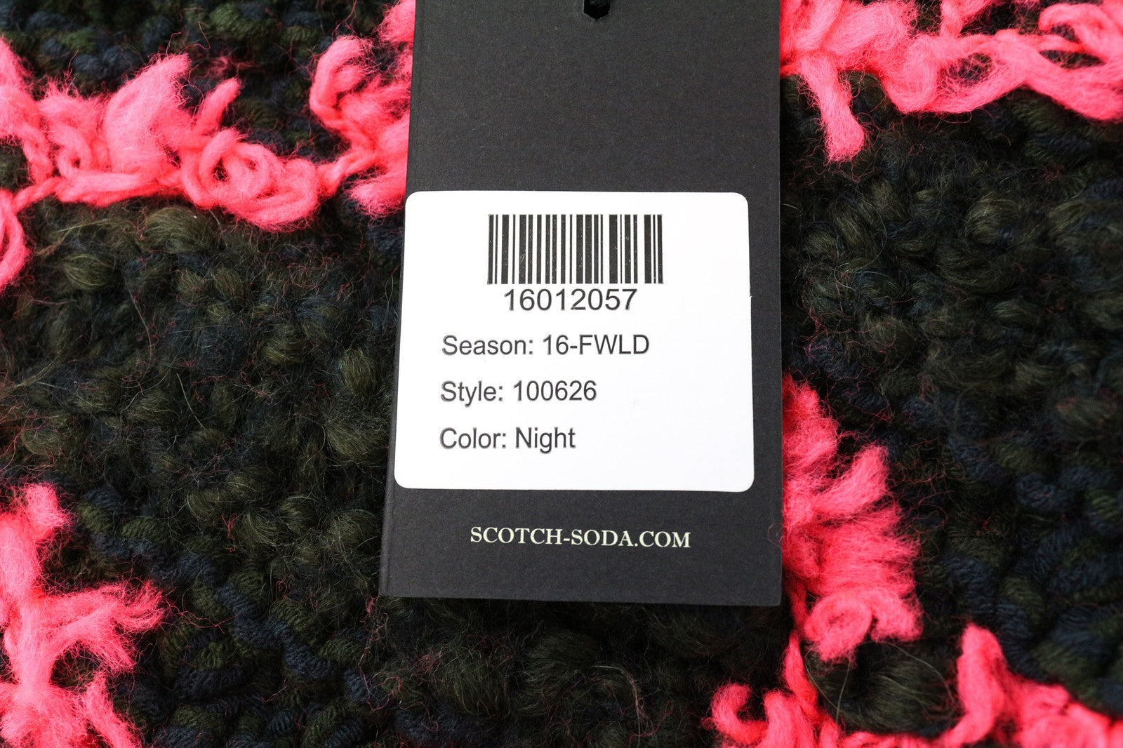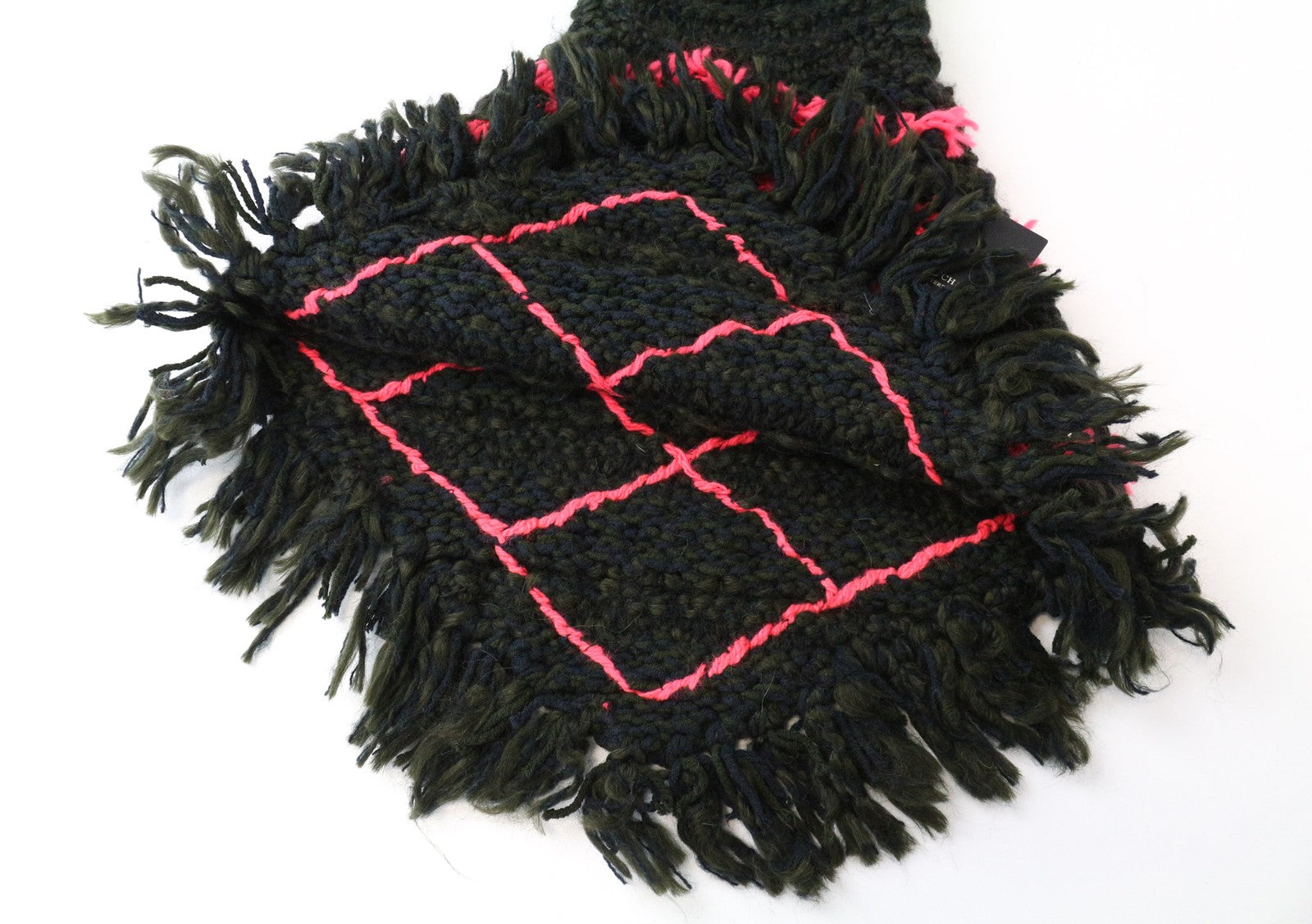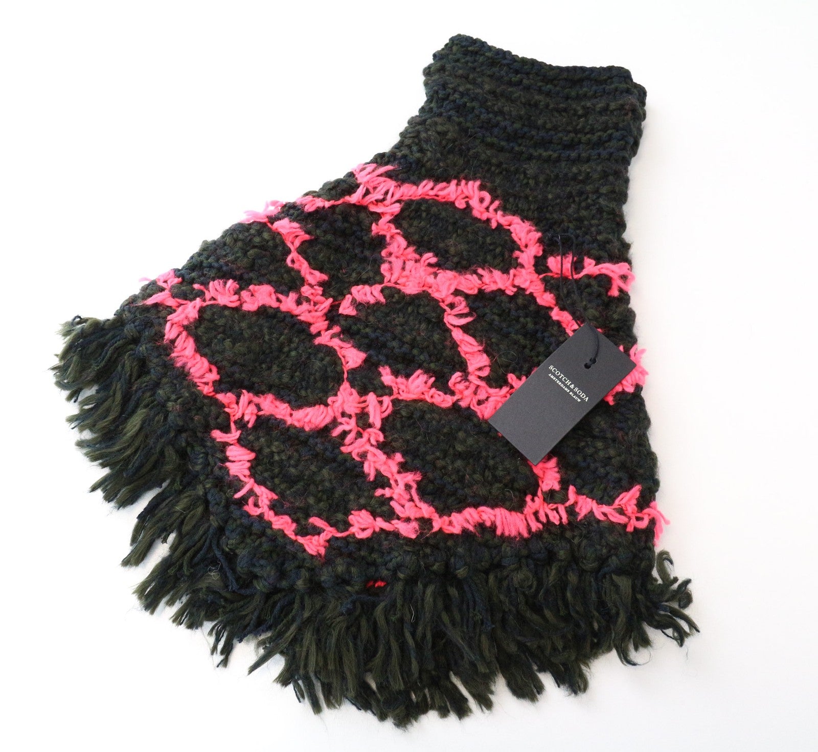 SCOTCH & SODA moteriškas šalikas OS žalias unisex kaklaskarė su storais kutais ir raštuotais kraštais