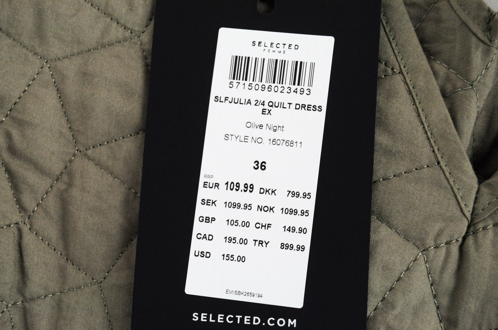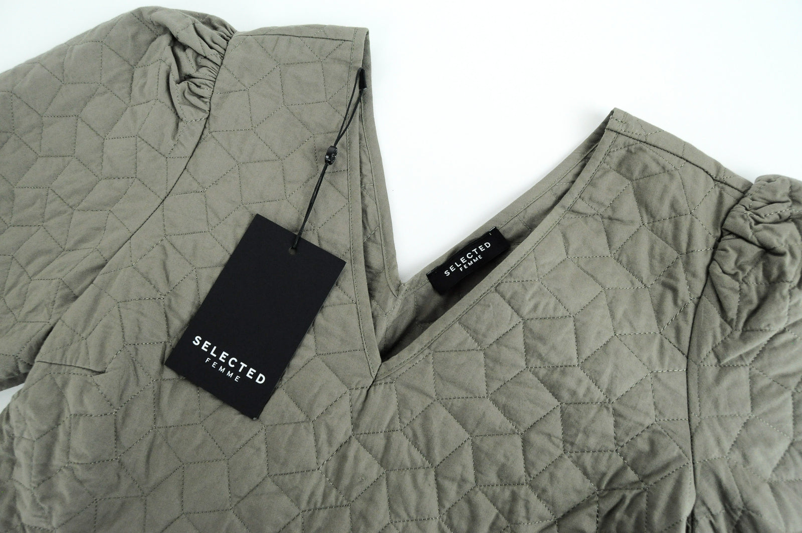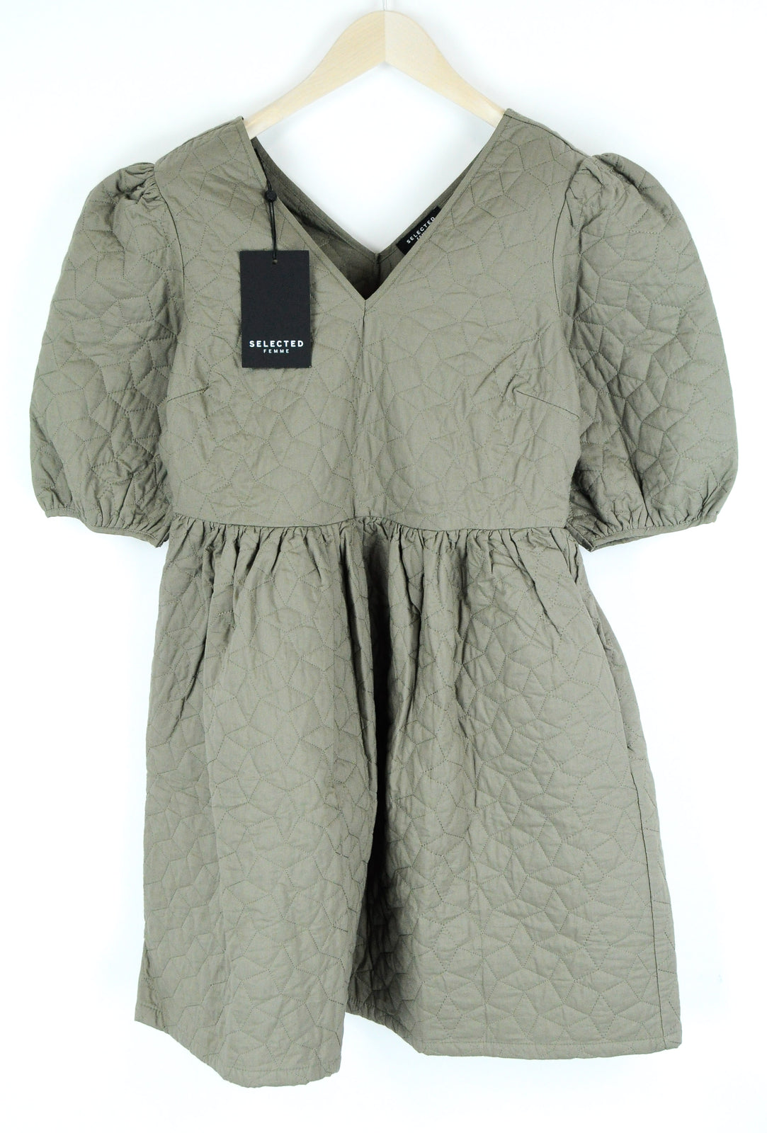SELECTED Women Dress EU36 Green Cotton Short Sleeve Puffy Balloon Skirt Style