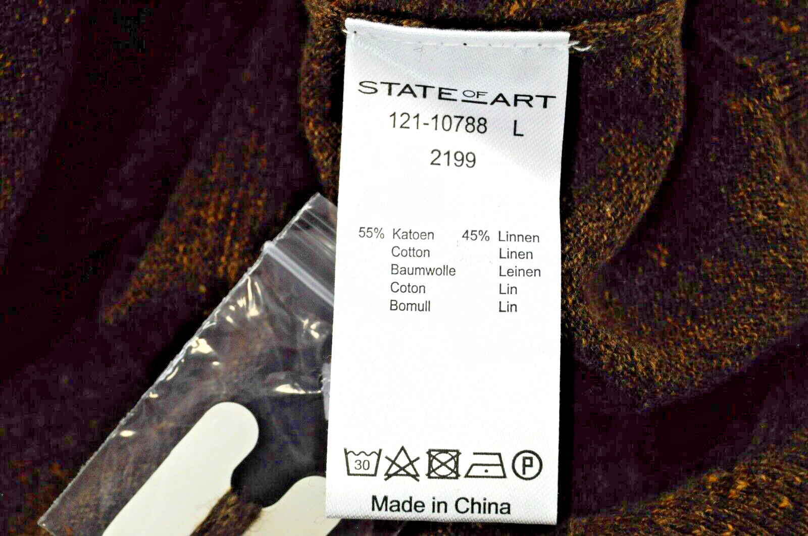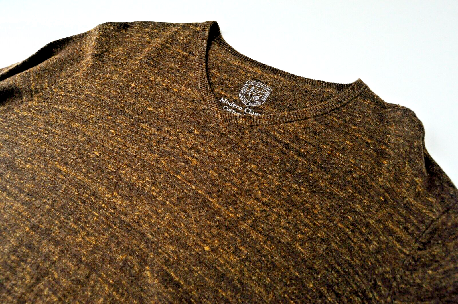 „STATE OF ART“ vyriškas L dydžio rudas medvilninis lininis megztinis su V formos iškirpte ilgomis rankovėmis