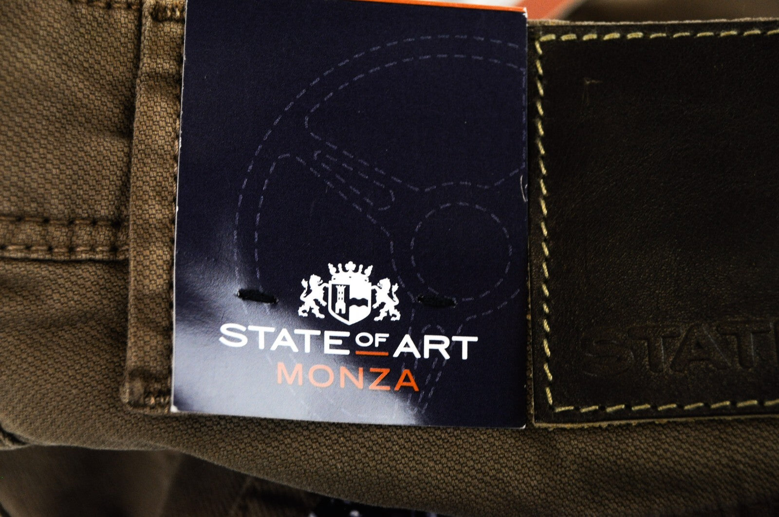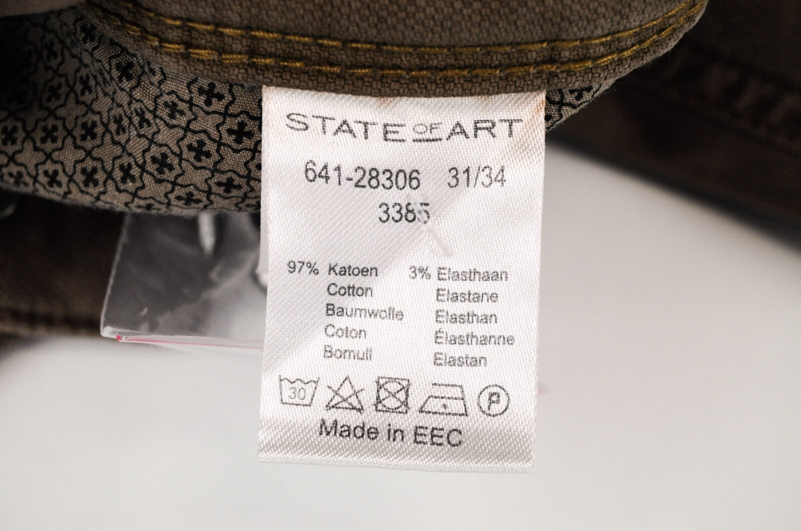 STATE OF ART Men Trousers W31/L34 Brown Regular Fit Stretch Cotton Zip Fly