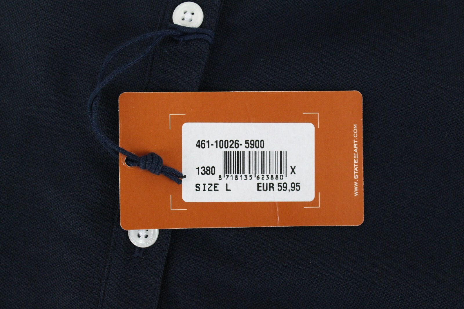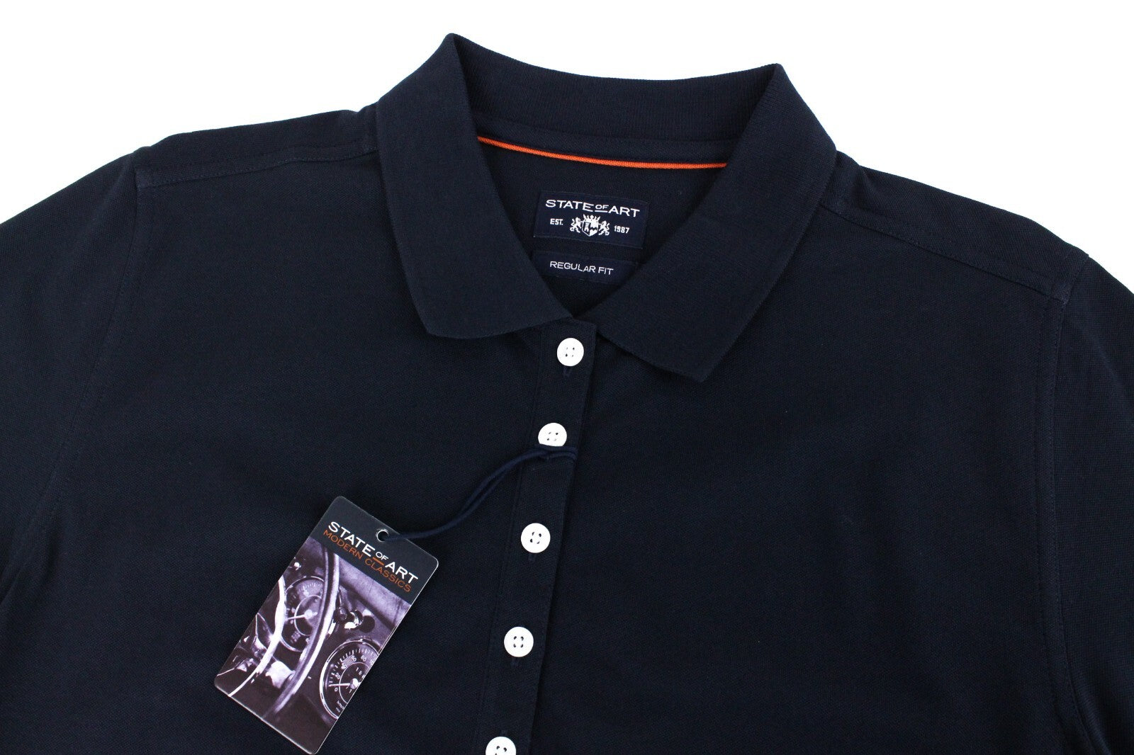 „STATE OF ART“ vyriški polo marškinėliai L dydžio, siuvinėti, tamsiai mėlyni, medvilniniai trumpomis rankovėmis.