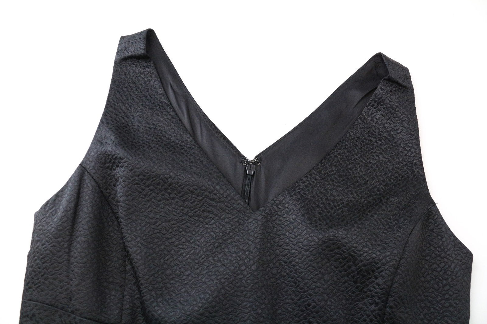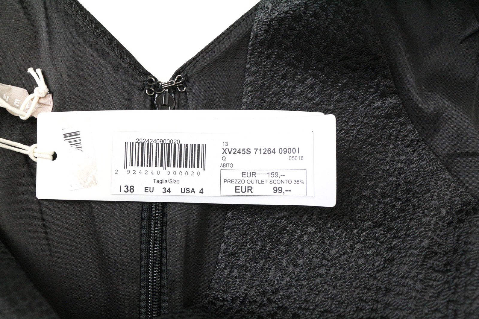 STEFANEL moteriška juoda be rankovių prigludusi trumpa klasikinė suknelė su V formos iškirpte EU34