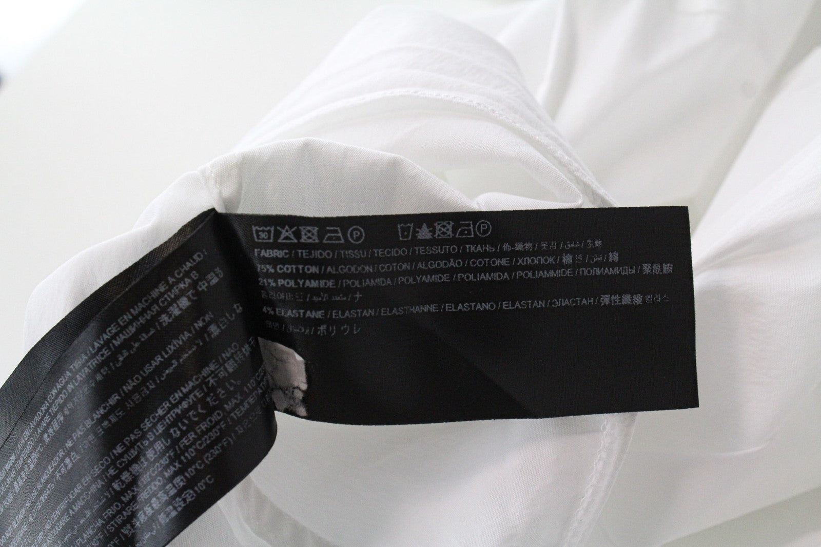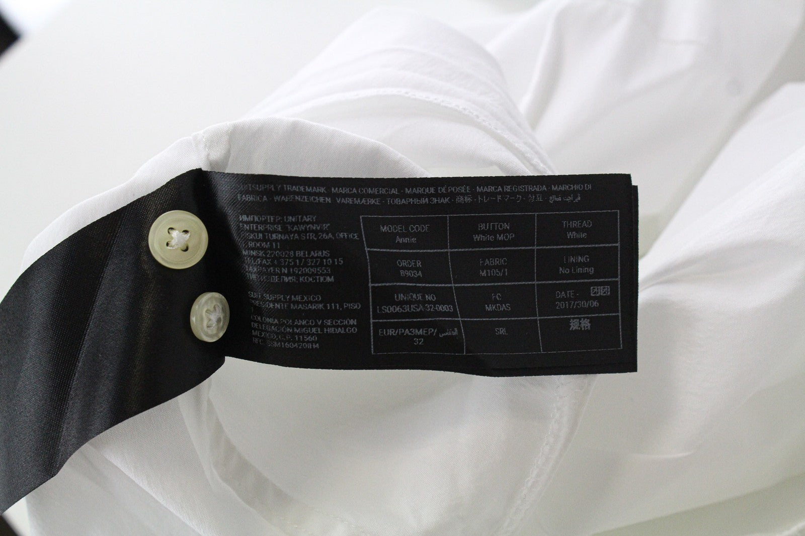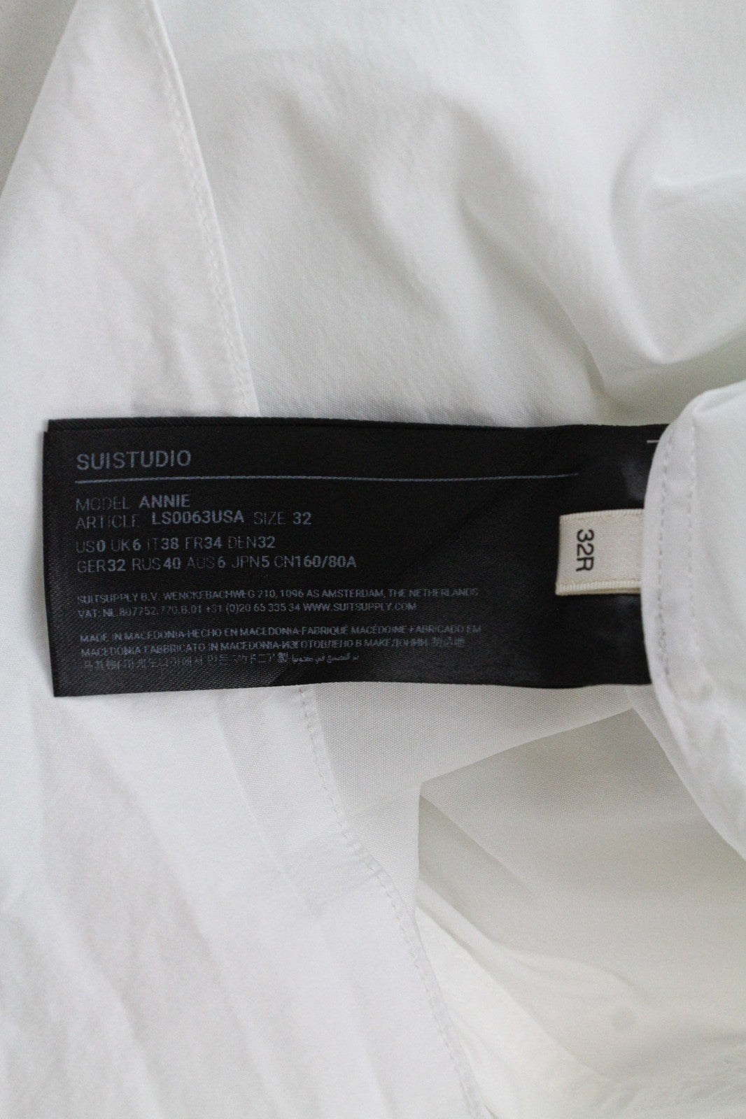 SUISTUDIO Annie moteriški marškinėliai UK6R balti tamprūs medvilniniai klostuoti ilgomis rankovėmis