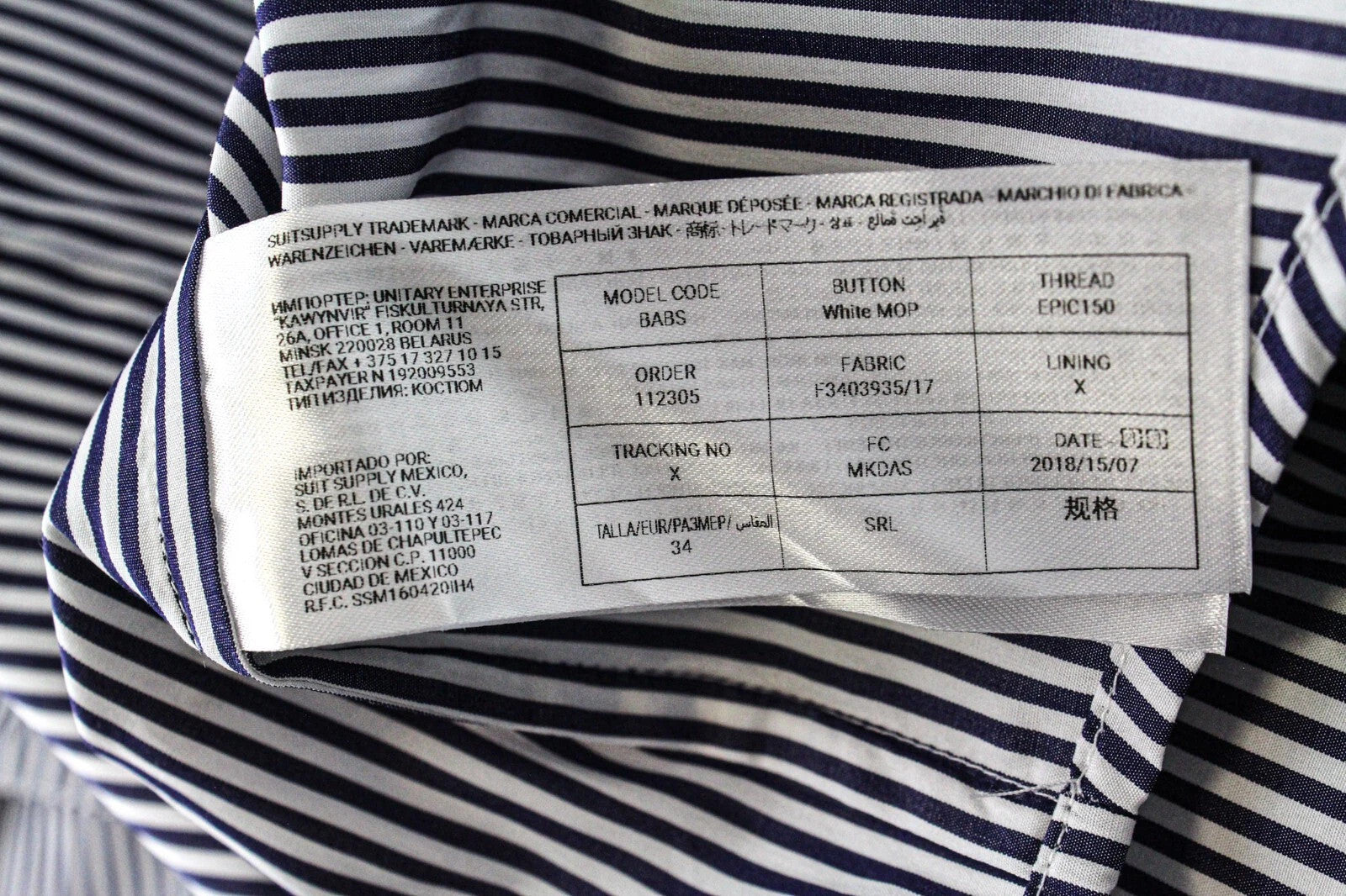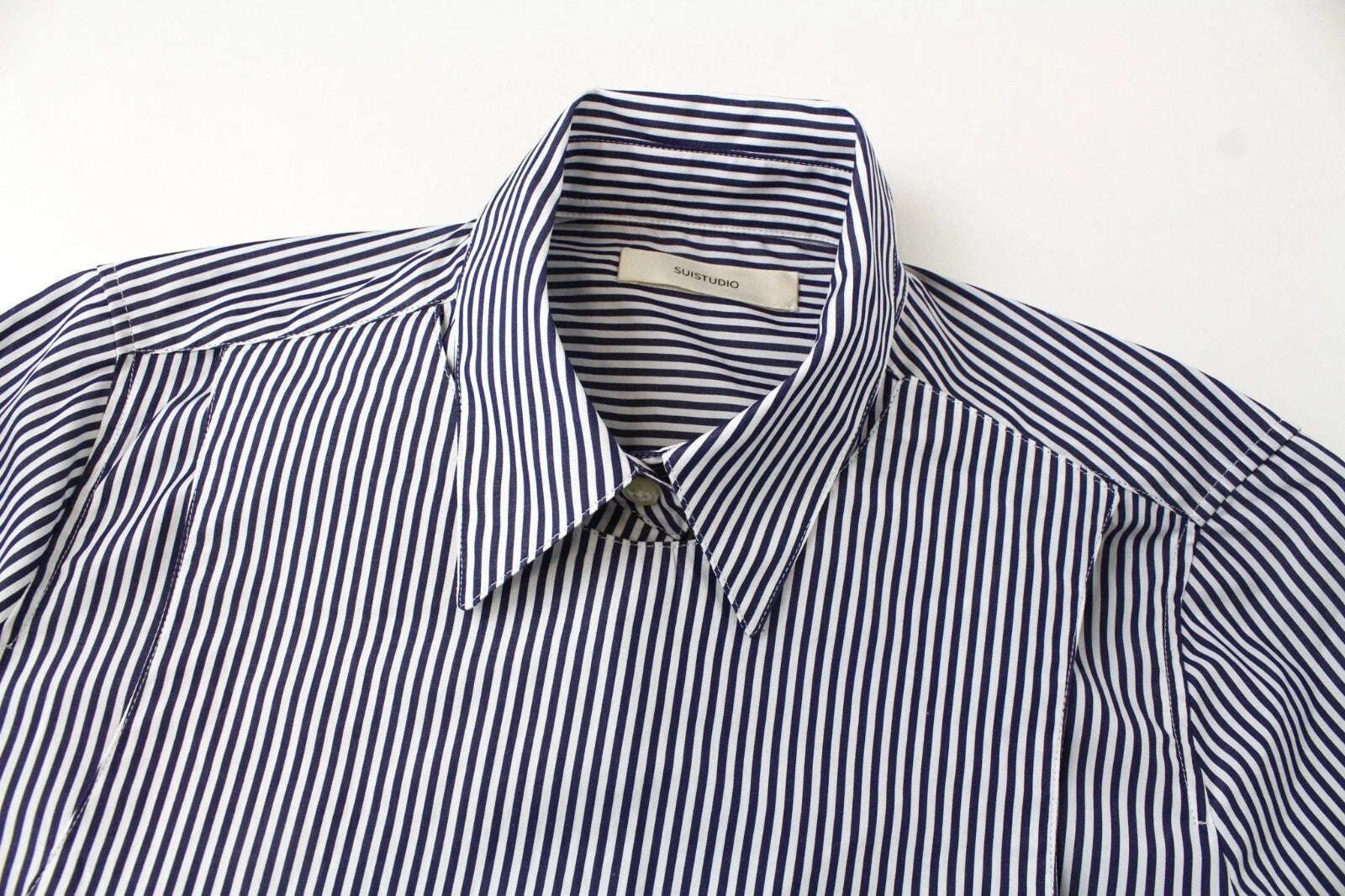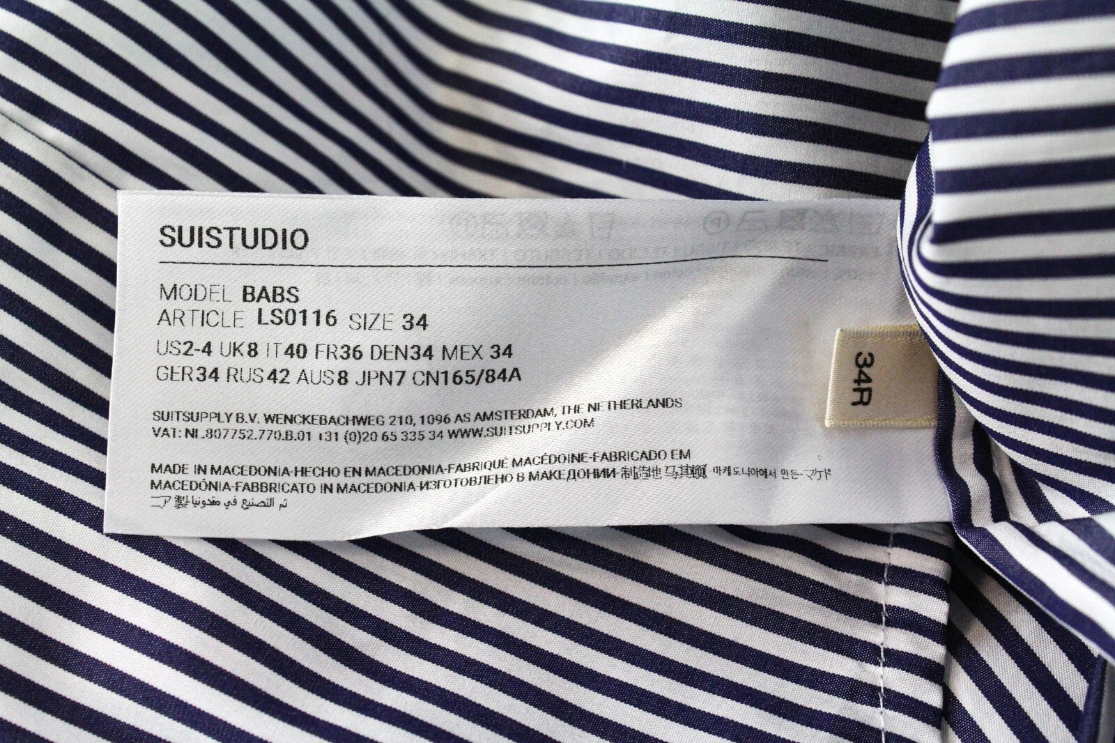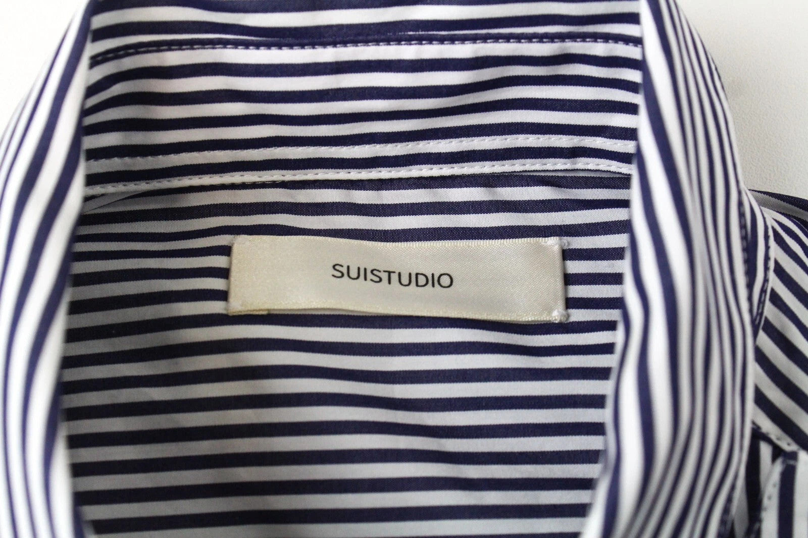 SUISTUDIO Babs moteriški marškinėliai UK8R mėlynai balti medvilniniai dryžuoti sluoksniuoti viršiniai