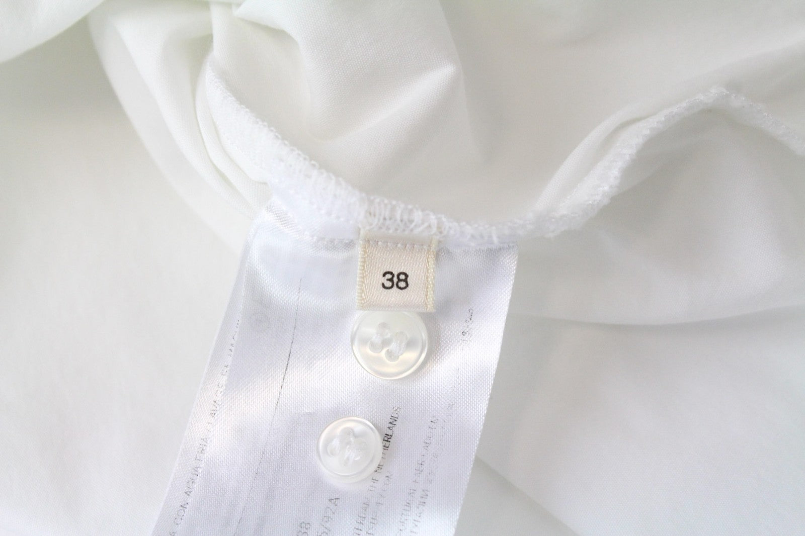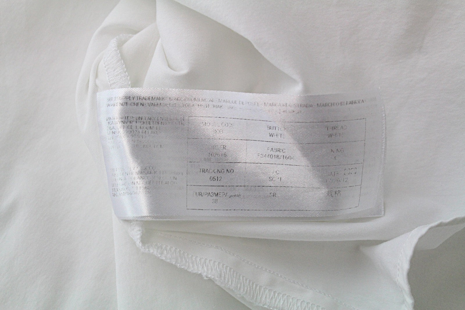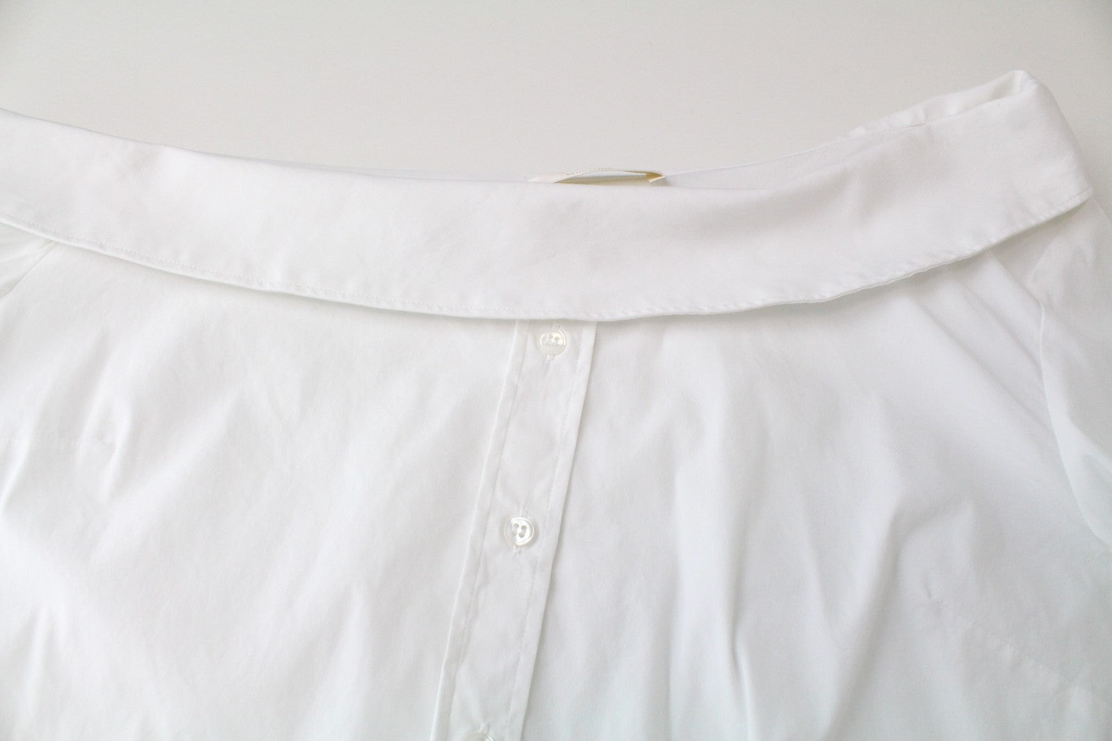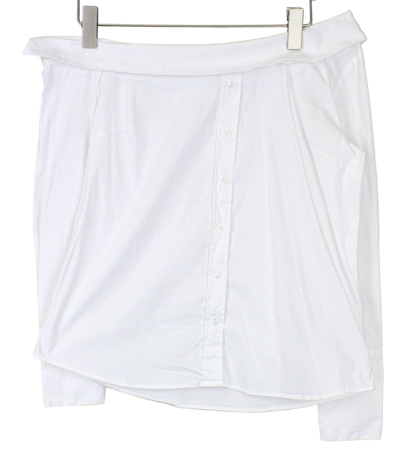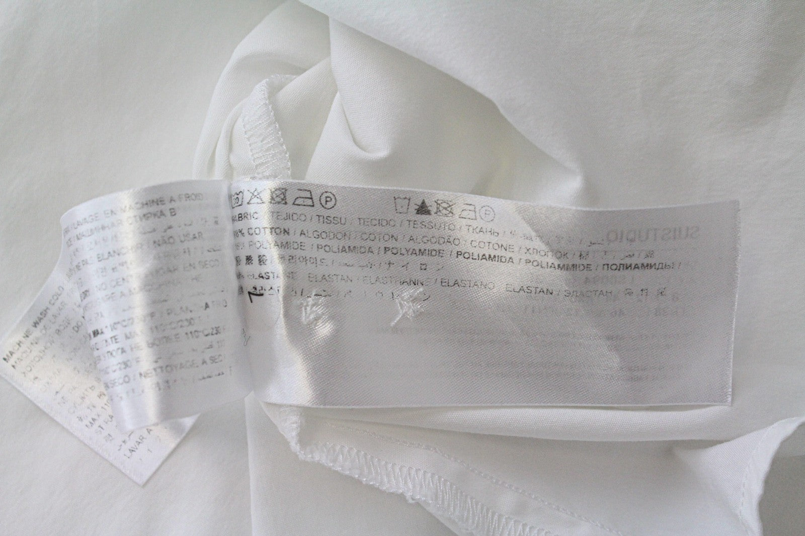 SUISTUDIO Bob moteriški marškinėliai, UK12, balti, tamprūs medvilniniai marškinėliai su atvirais pečiais, asimetrija
